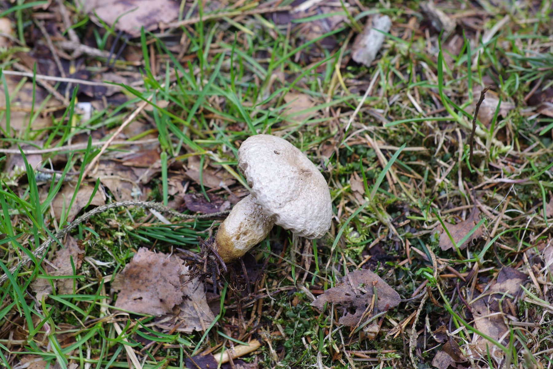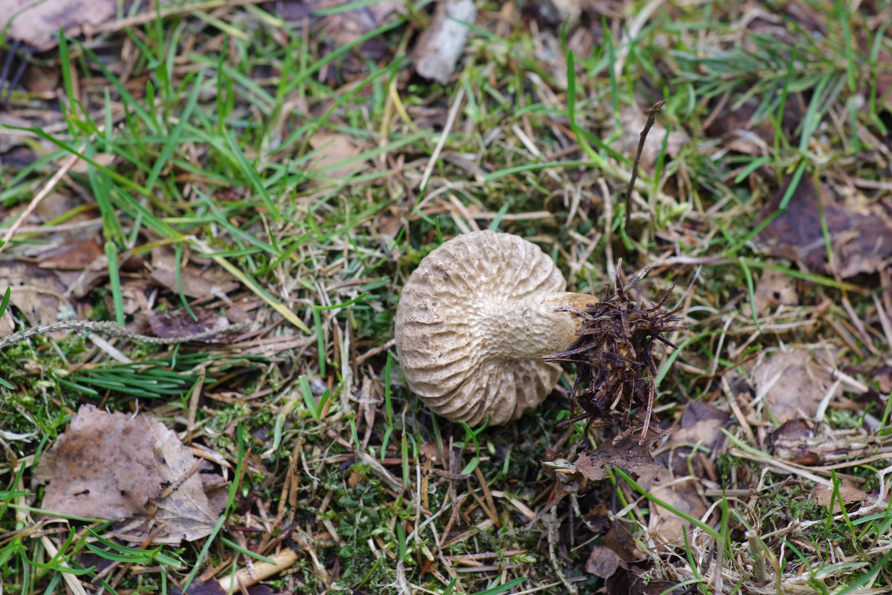 Standort: etwas trockenere Stelle mit Fichte in ansonsten morastigem Wald (Moorbirke, Grauerle, Schwarzerle); 4 cm im Durchmesser, etwa 5 cm hoch. War ein Einzelstück.