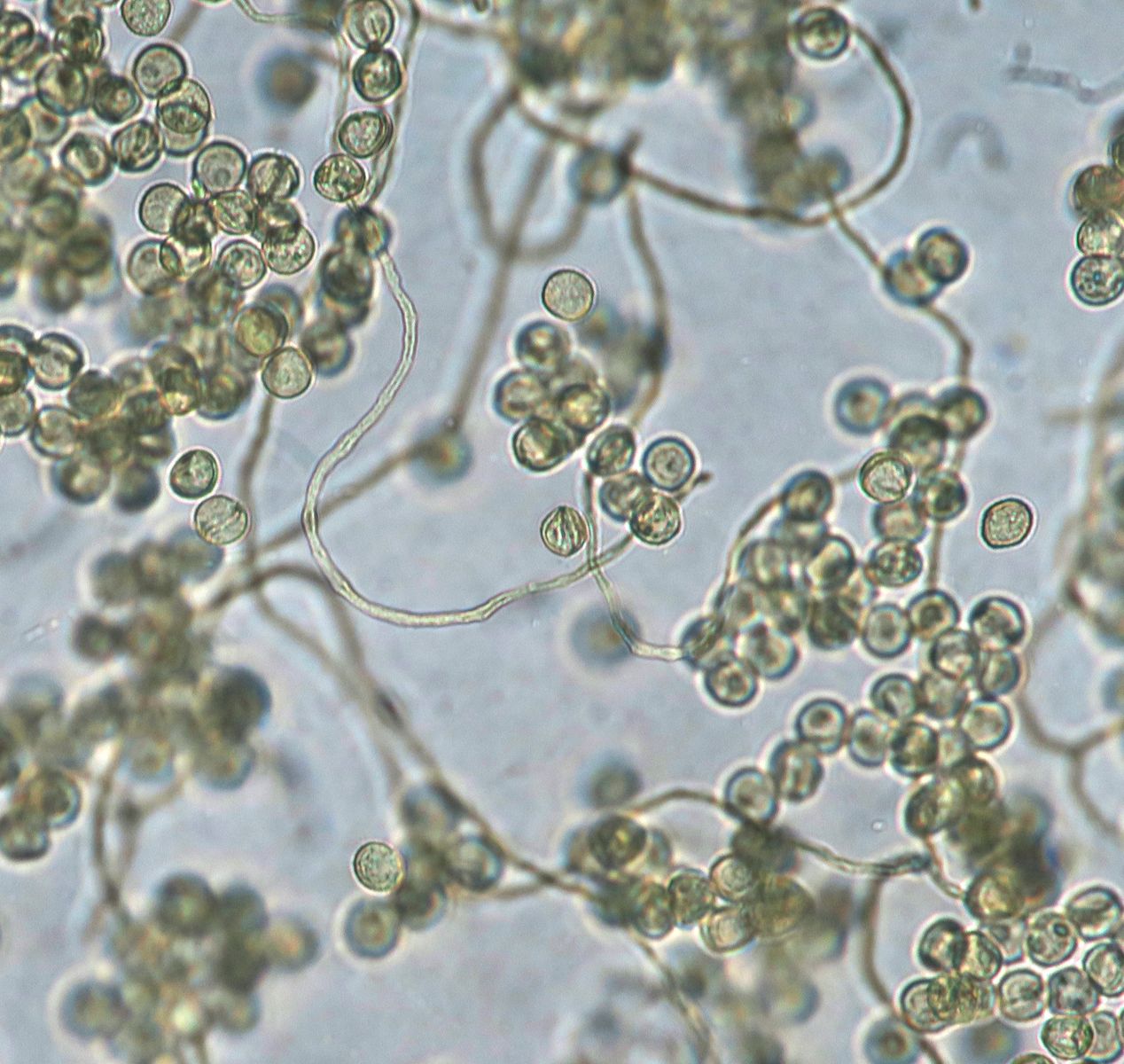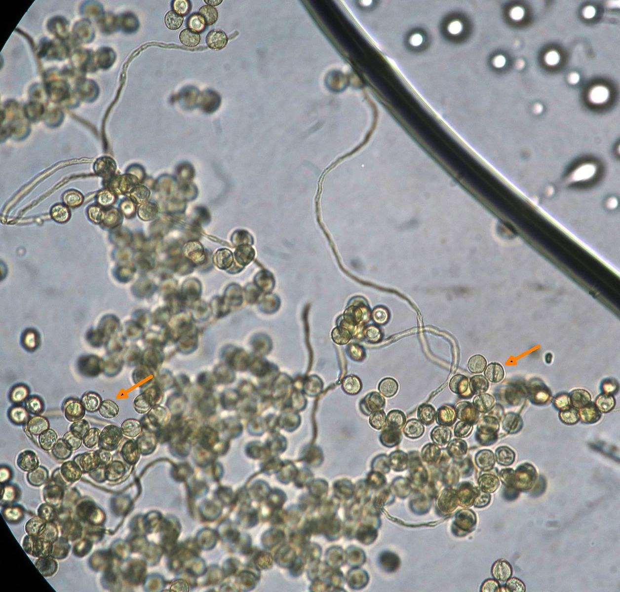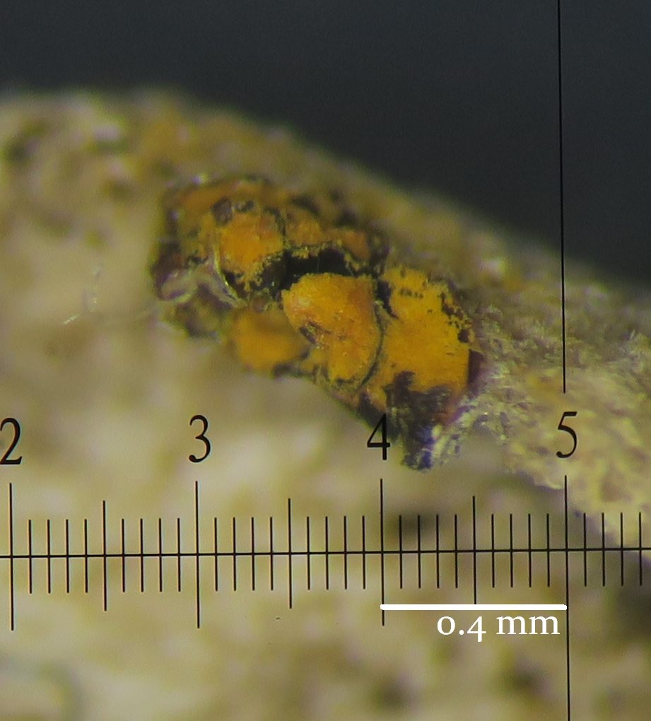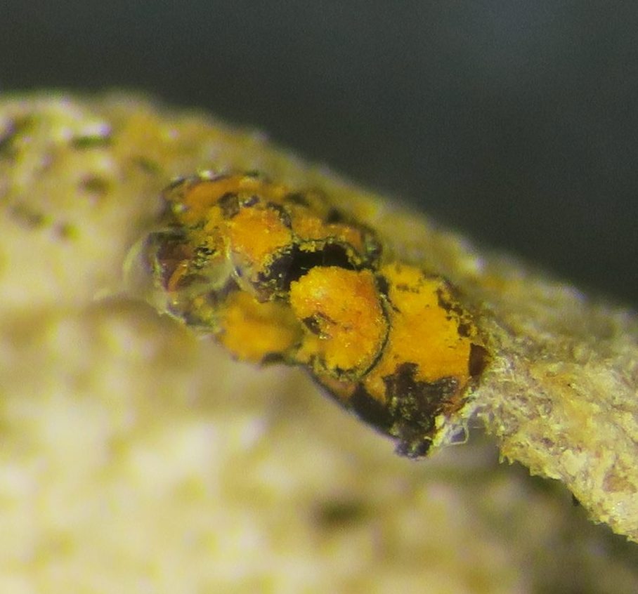 Hello, I found some myxomycetes on a plant with dead leaves immersed in water, and this tiny species a discoid myxocarp with orange spores mass is one of them. The fruiting body is minute barely visible and I have very little material to examine. The spores seems be ornamented with very small spines (punctate) and the capillitium is very thin and wavy. Some spores have an equatorial marking (maybe an artefect).
