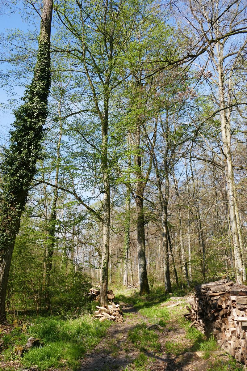 Bild 1 Waldweg mit locker stehenden Laubbäumen: Eichen, Buchen, Ahorn,..