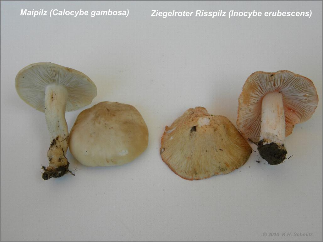 Das einzige was mir als unerfahrenen Pilzsammler ins Auge gefallen ist, das beim Maipilz die Frucht hutförmig ist und beim Riesenrötling der Hut eher flach und in die Breite geht, wie ein aufgeschlagenes Ei in der Pfanne.
