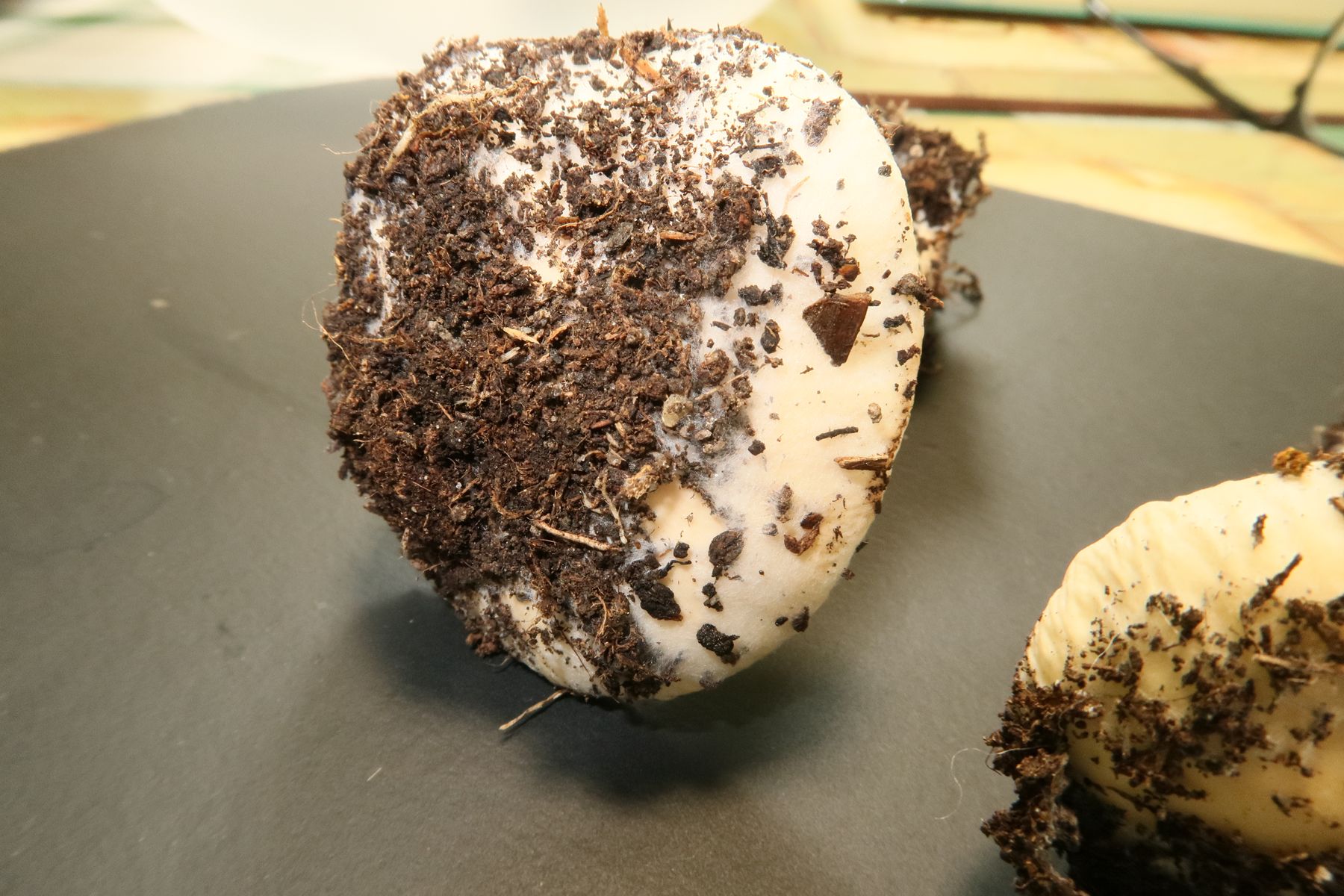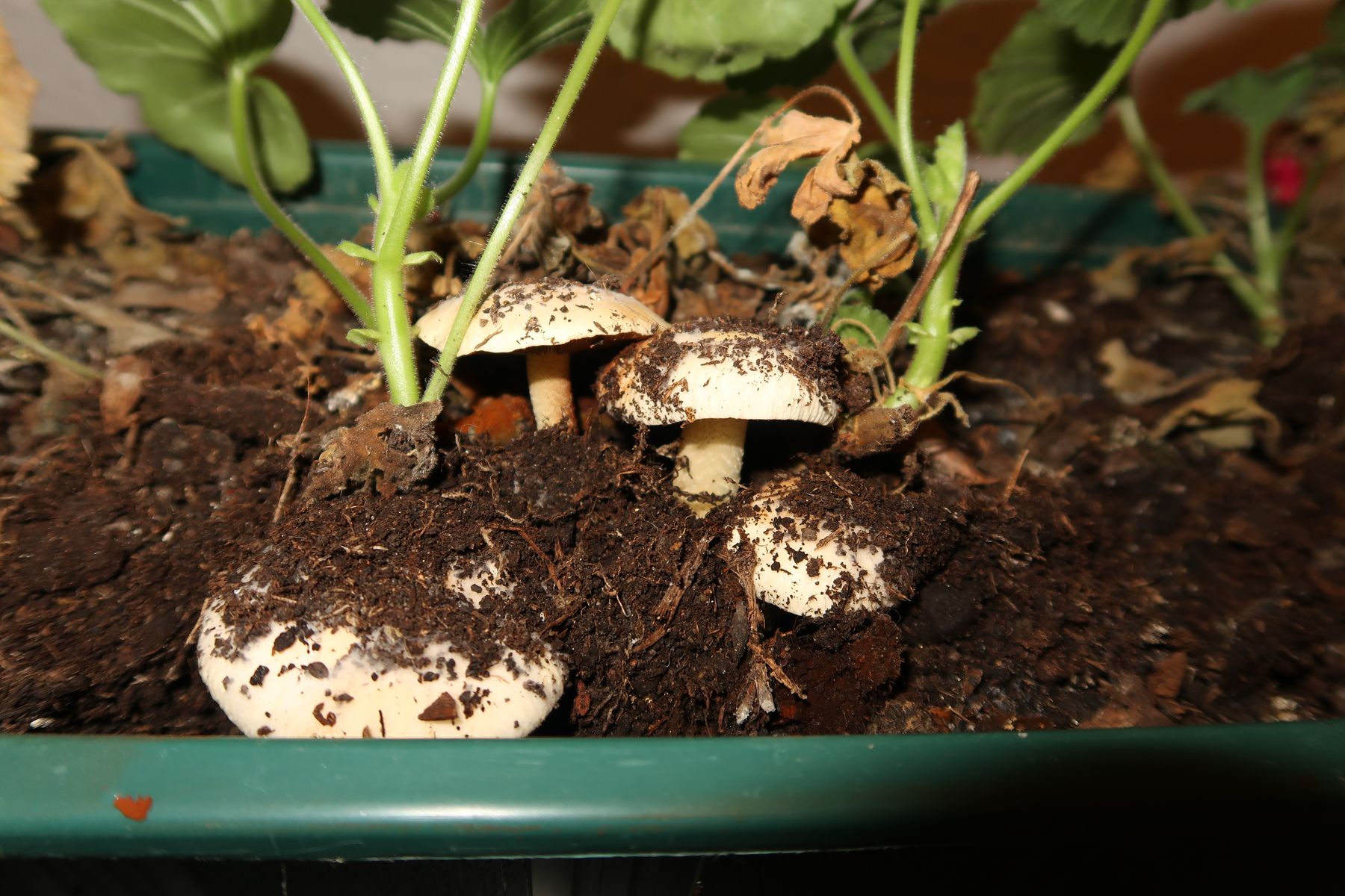 ich habe heute in einem überwinterten Blumenkasten mit Geranien Pilze gefunden. Sie standen im halbdunkel bis eben im Keller bei so rund 14 °C.