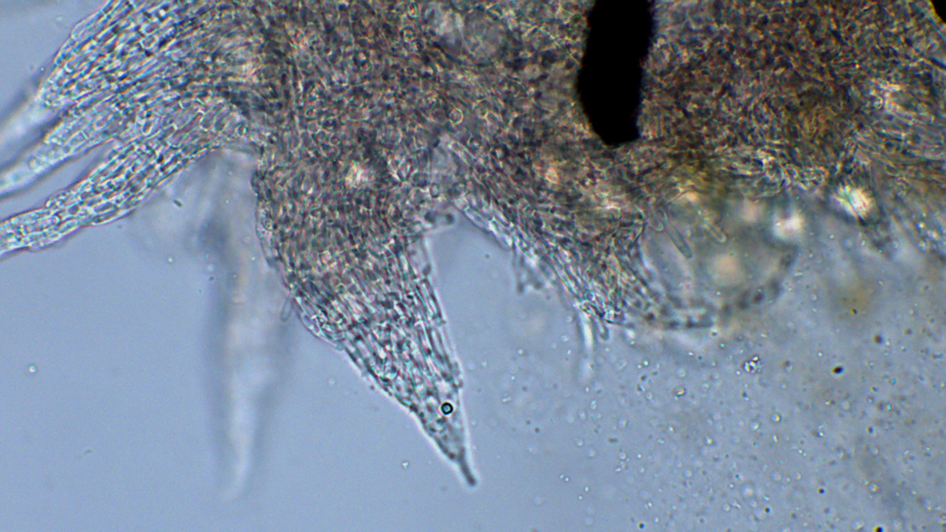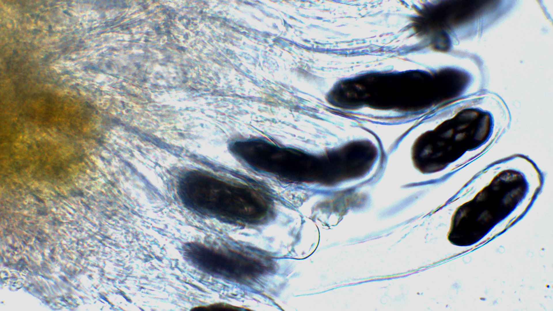 Ich denke, dass ich damit eine andere Kollektion ebenfalls als S. caesariatus bezeichnen kann, auch wenn hier die Randhaare nicht so zusammengeklebt waren wie bei manch anderen Funden. Doveri erwähnt in seinem Schlüssel noch eine S. subcaesariatus, die allerdings deutlich verdickte Paraphysen haben soll und wo die Randhaare nicht zusammengeklebt sein sollen. Hast du diese mal gesehen, Nobi?