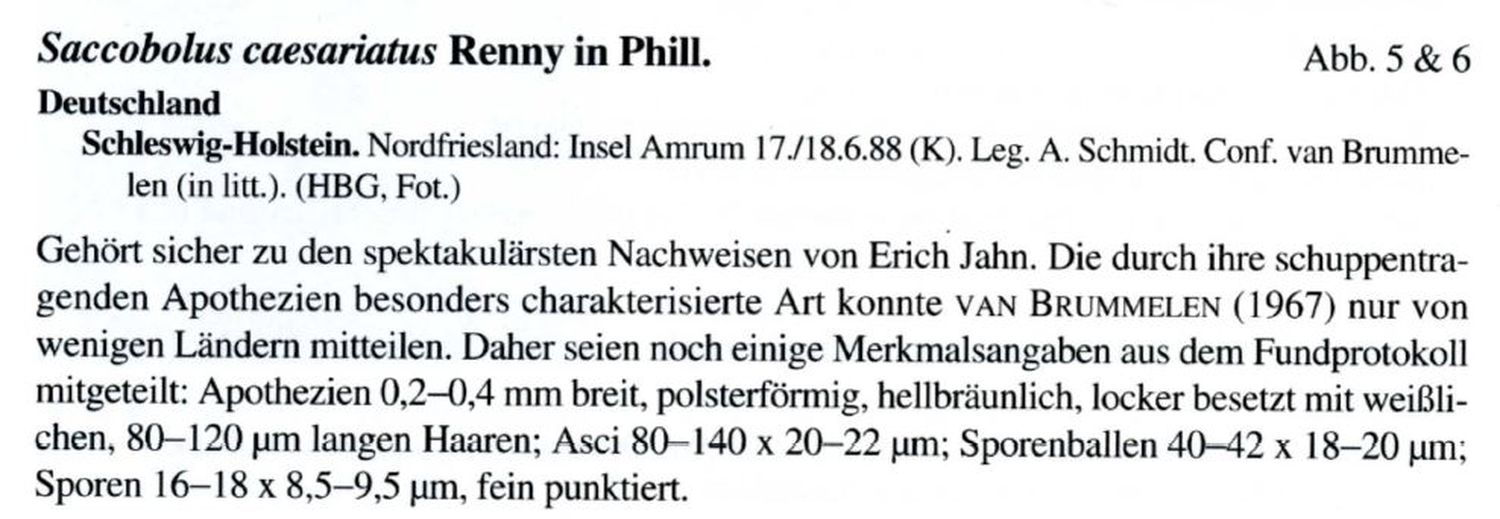 Zurück zum Saccobolus. Die Aufzeichnungen aus der Z. Mykol. 63/2, 1997 füge ich im folgenden an.