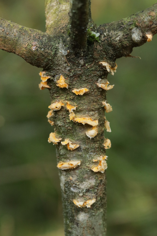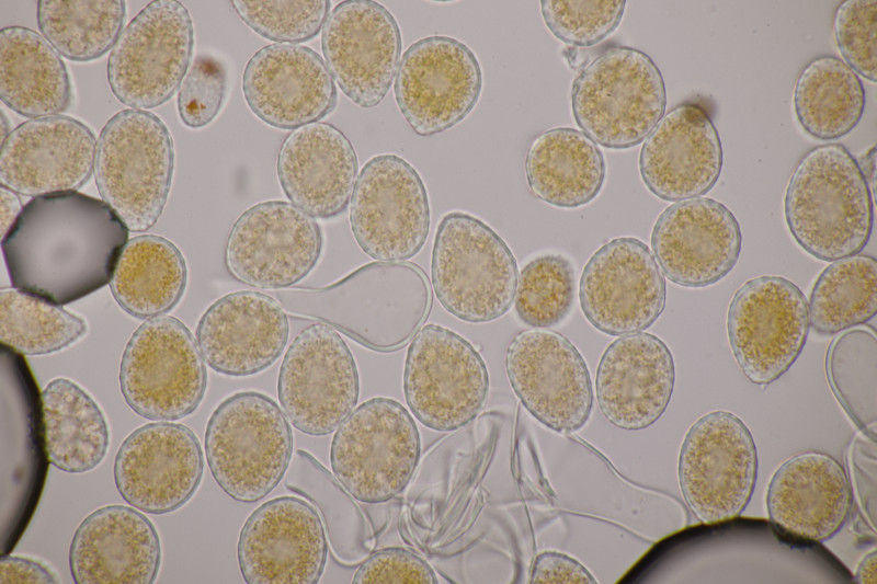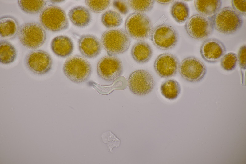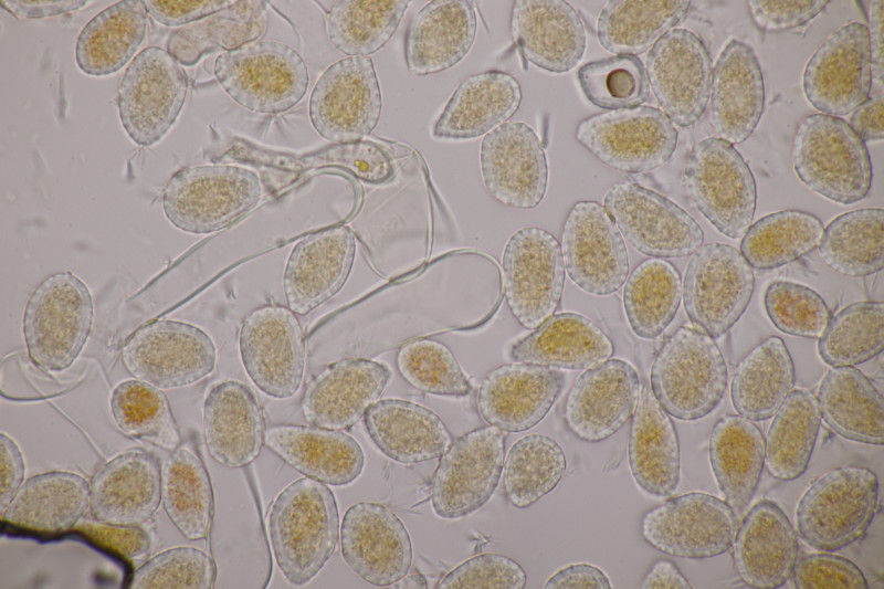 7. Melampsora aecidioides ex Populus sp. An und für sich sind Roste auf Leuce-Pappeln ja sehr schwer zu bestimmen, dieser hier ist nach Aussage von Pascal Frey aber sehr gut charakterisiert durch die großen Paraphysen und das frühe Auftreten an frischen Austrieben durch in den Knospen überwinternde Uredosporen.