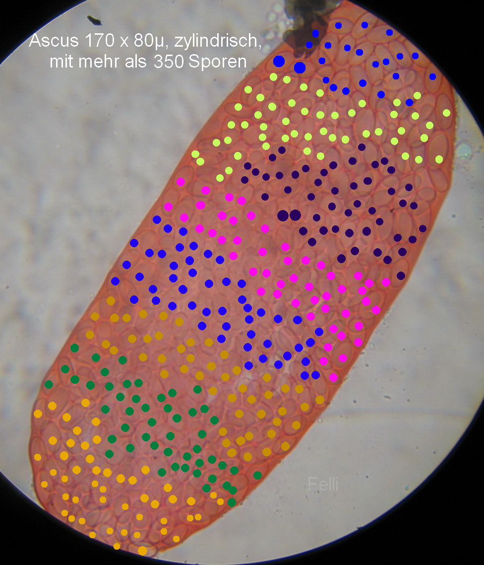 Die Asci unterm Mikro fast zylindrisch mit über 350 Sporen