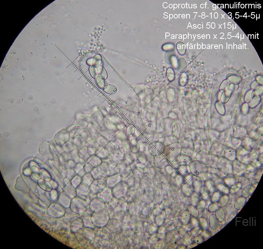Die Sporen scheinen mir für granuliformis zu klein, auch sind die Paraphysen apikal nicht deutlich verdickt.