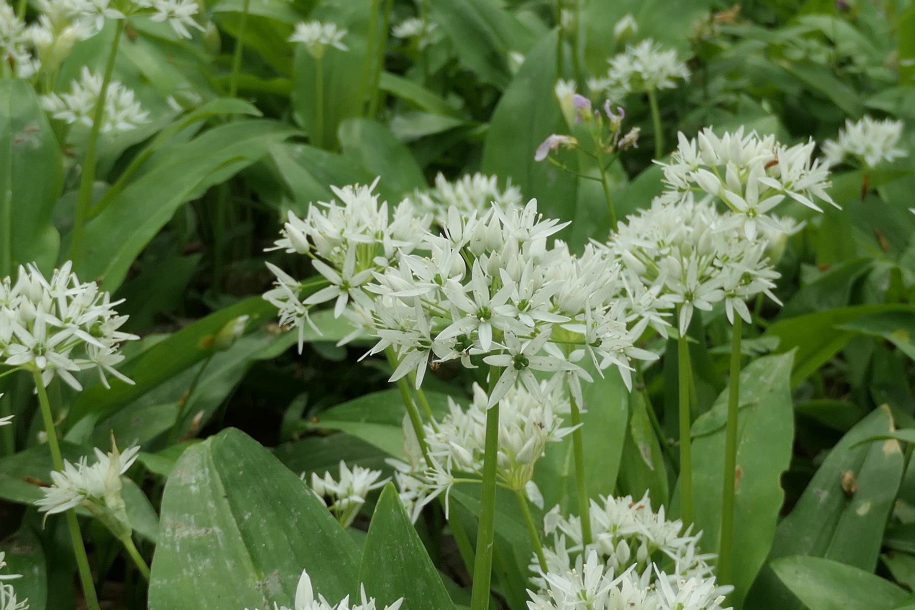 Gefunden habe ich große Flächen mit blühenden Bär-Lauch. Es handelt sich um ein Naturschutzgebiet, in dem das sammeln von Bärlauch verboten ist, so dass eben viele blühen können.