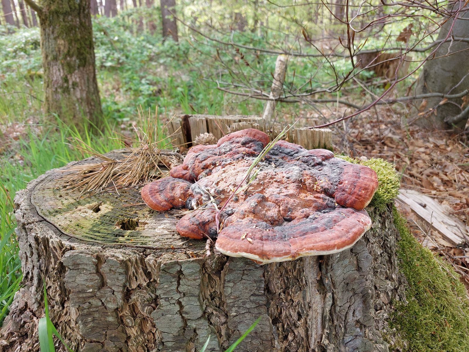 Einen Rotrandiger Baumschwamm auf einem Kiefernstumpf habe ich dann doch noch gefunden .