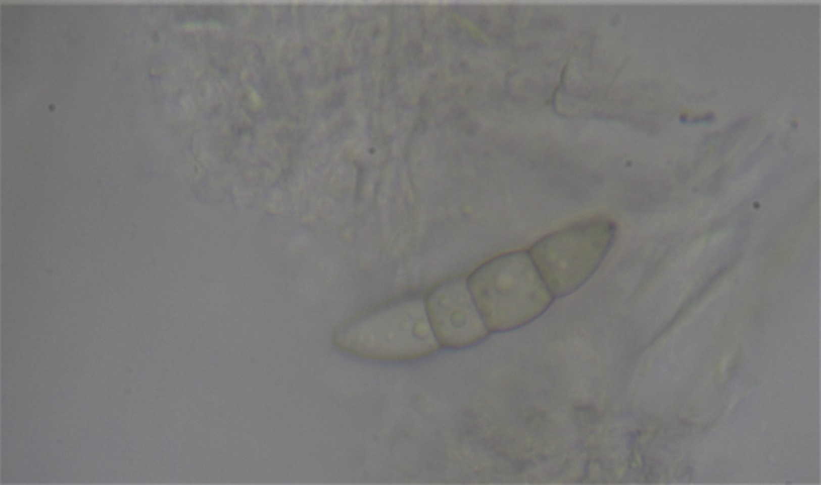 Pseudothezien dem Substrat aufsitzend, schwarz, kugelig (vergleichsweise recht groß), Sporen 3-s,grünlich-hyalin, 2-zelle leicht verdickt 40 - 44 x 8-9 µ (lit-Angabe), Asci: 8-sporig