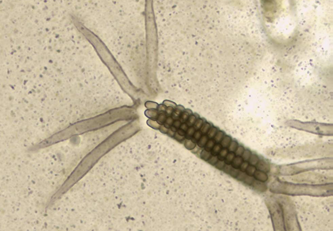 Sporen 16 zellig, ca. 40µ x 3,3µ
