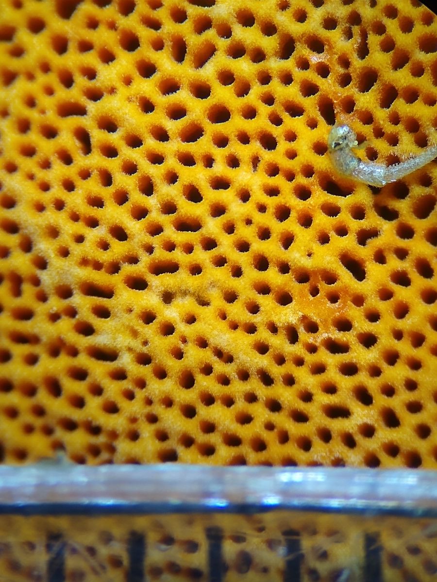 Die Poren sind rund bis länglich; ihre Dichte liegt bei geschätzt 3-4/mm: