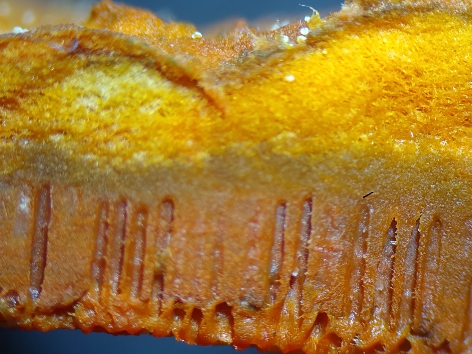 der Vollständigkeit halber als Nachtrag noch das mikroskopische Ergebnis, das nMn die Vermutung P.cinnabarinus stützt.
