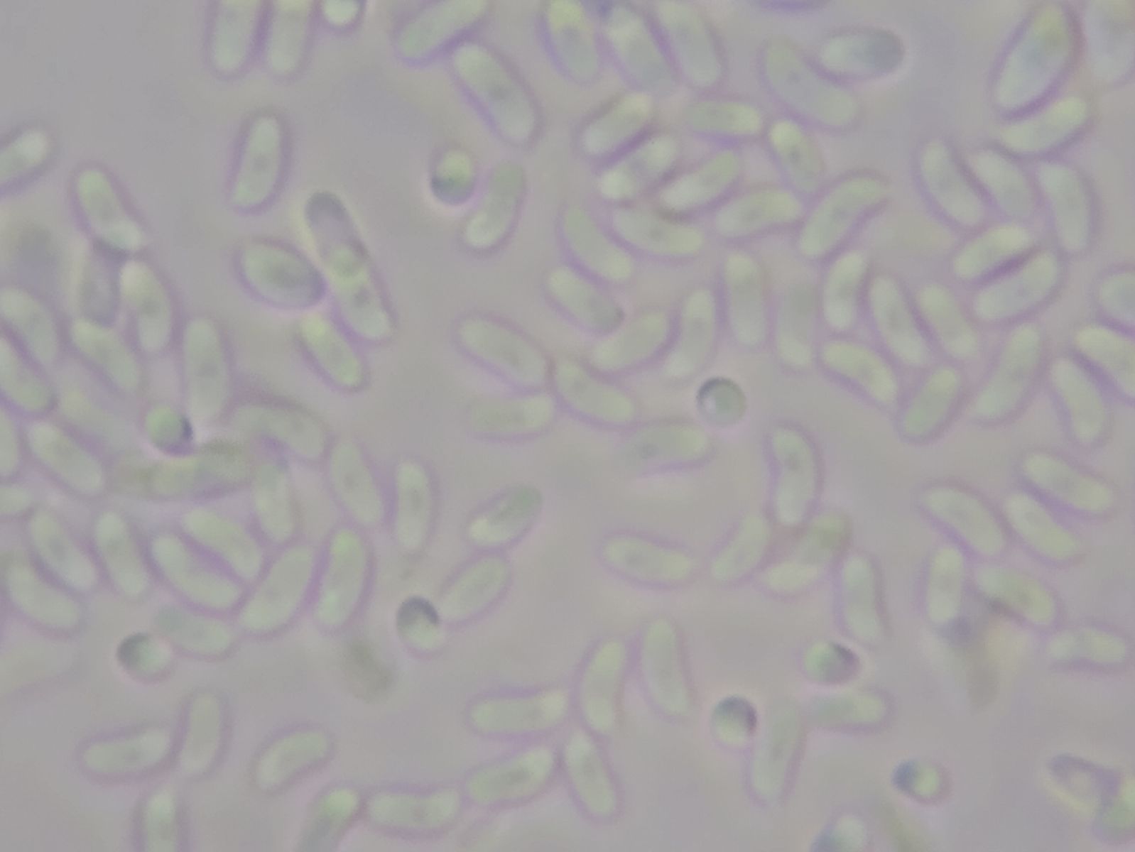 Der Sporenabwurf zeigt bockwurstförmige, hyaline Sporen mit Abmessungen von 4,8-5,0-7,0 x 2,0-2,5-3,5 µm² (Min-Mean-Max); Q = 2,1; N = 20