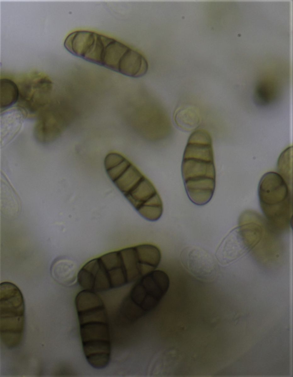 Pyknidien im Substrat eingesenkt, Sporen muriform 19 - 23 x 7-8 (9) µ, 3-5 Quersepten, braun