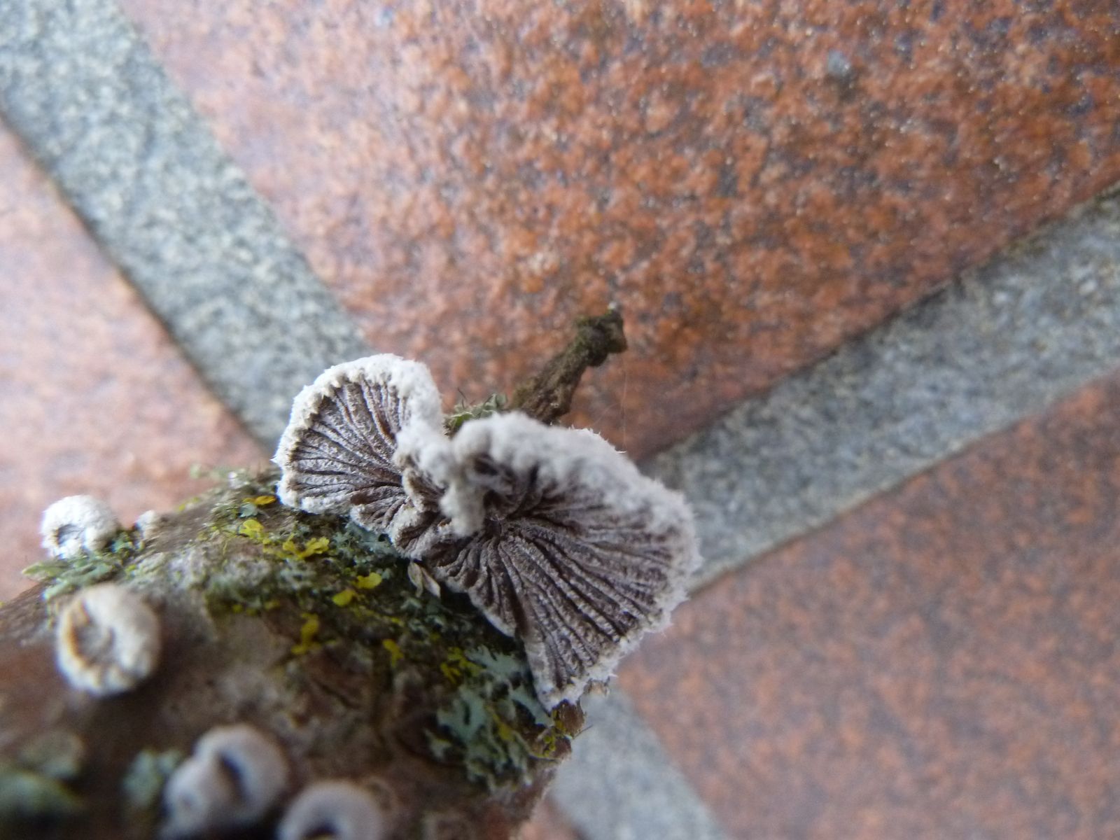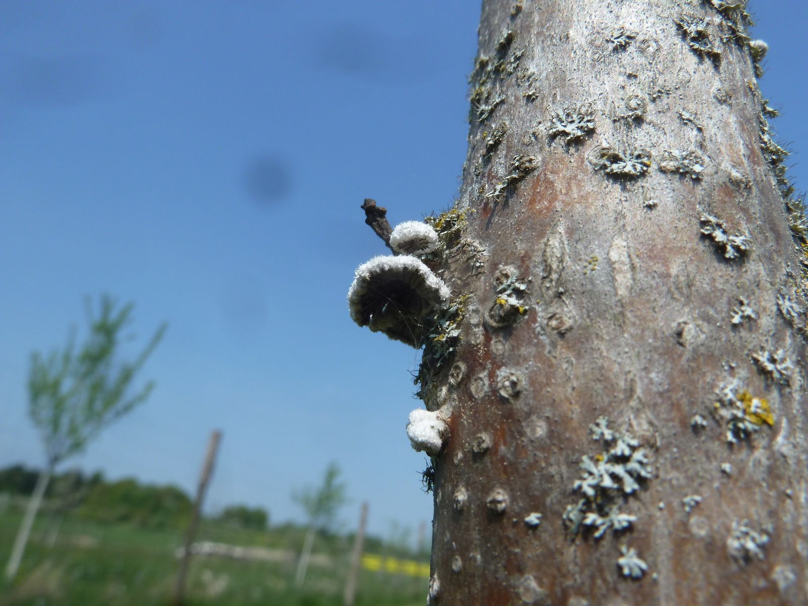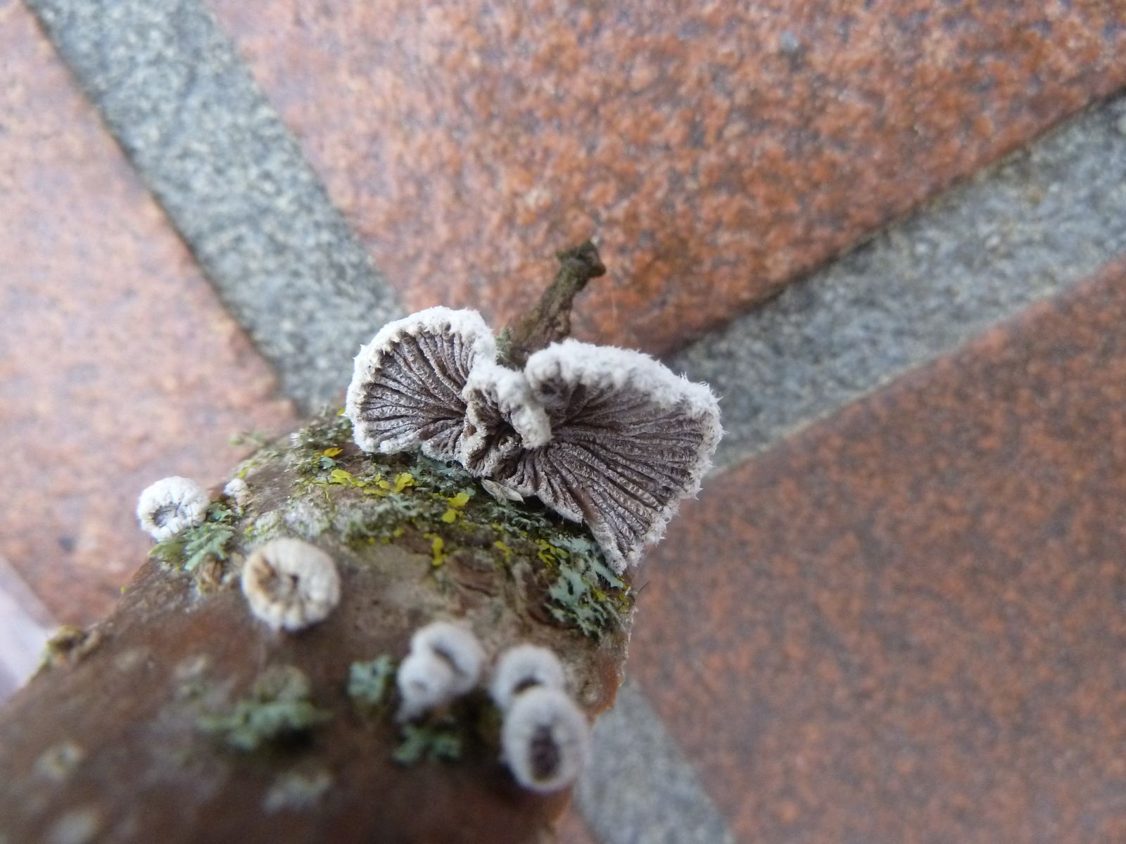 Heute habe ich meine Paulownia Plantage inspiziert und an zwei geschwächten bzw. abgestorbenen Exemplaren kleine weiße Pilzchen entdeckt. Meine Bestimmungsversuche führten mich zum Spaltblättling, den ich vor mehreren Jahren schonmal gefunden hatte, aber anders in Erinnerung habe.