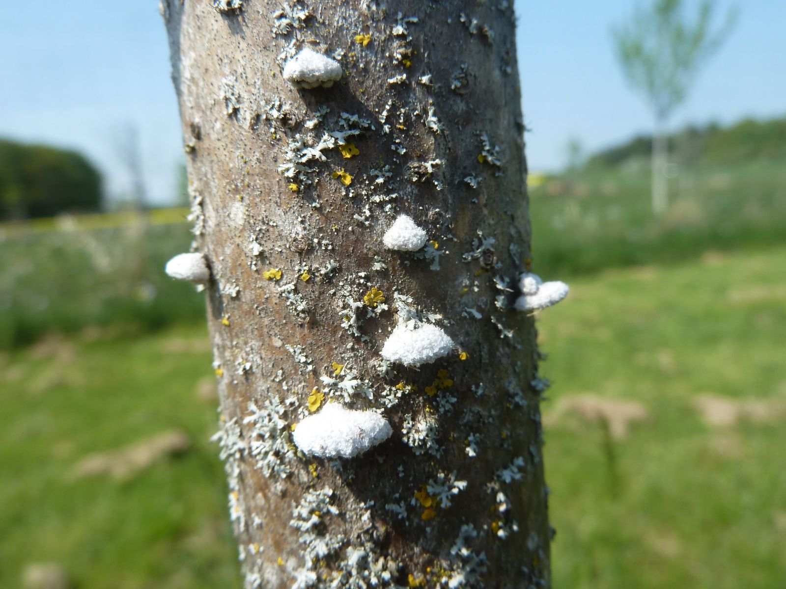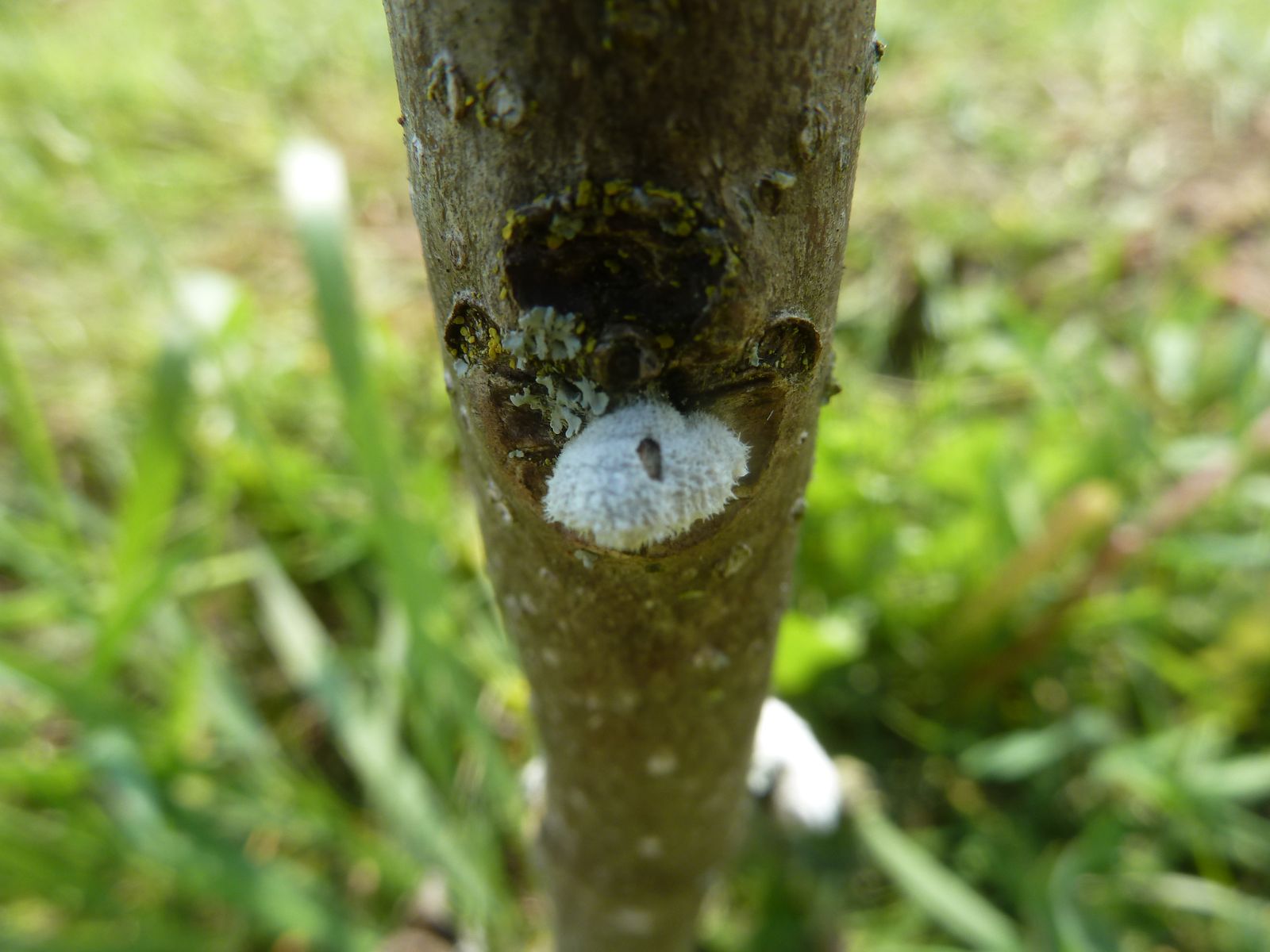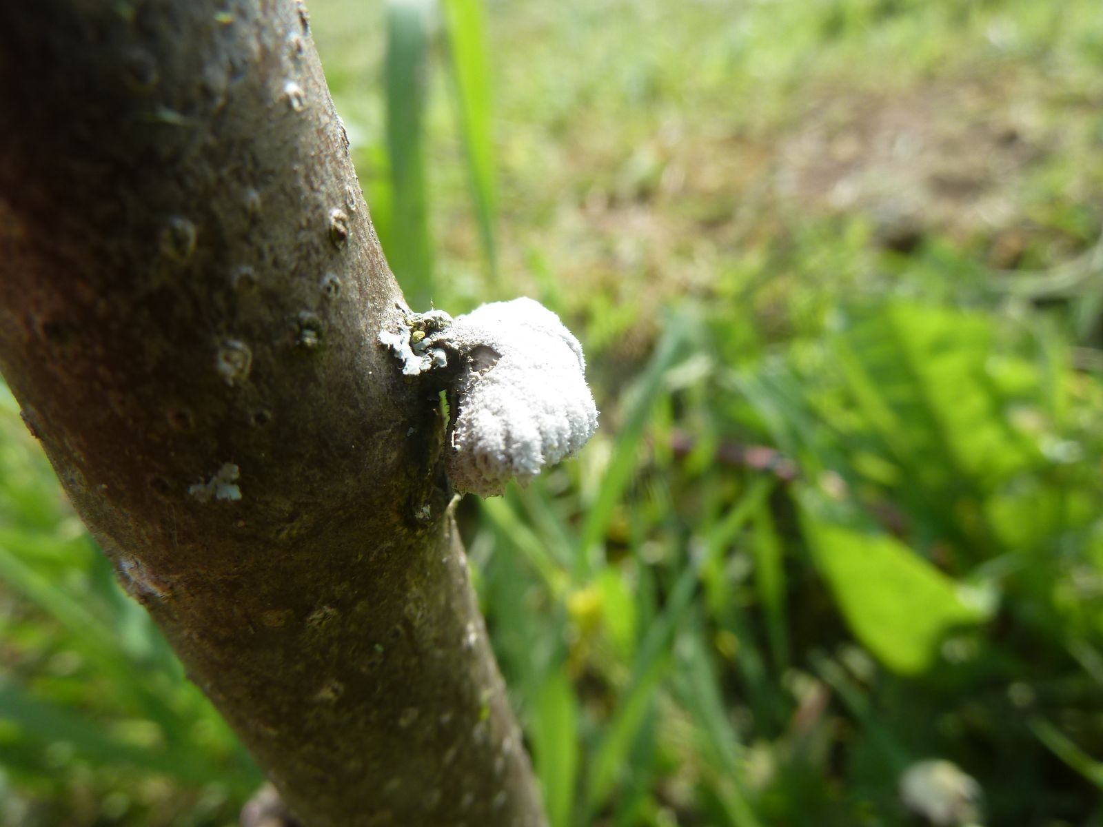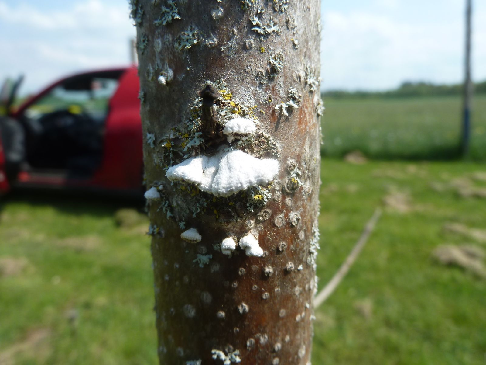 Heute habe ich meine Paulownia Plantage inspiziert und an zwei geschwächten bzw. abgestorbenen Exemplaren kleine weiße Pilzchen entdeckt. Meine Bestimmungsversuche führten mich zum Spaltblättling, den ich vor mehreren Jahren schonmal gefunden hatte, aber anders in Erinnerung habe.