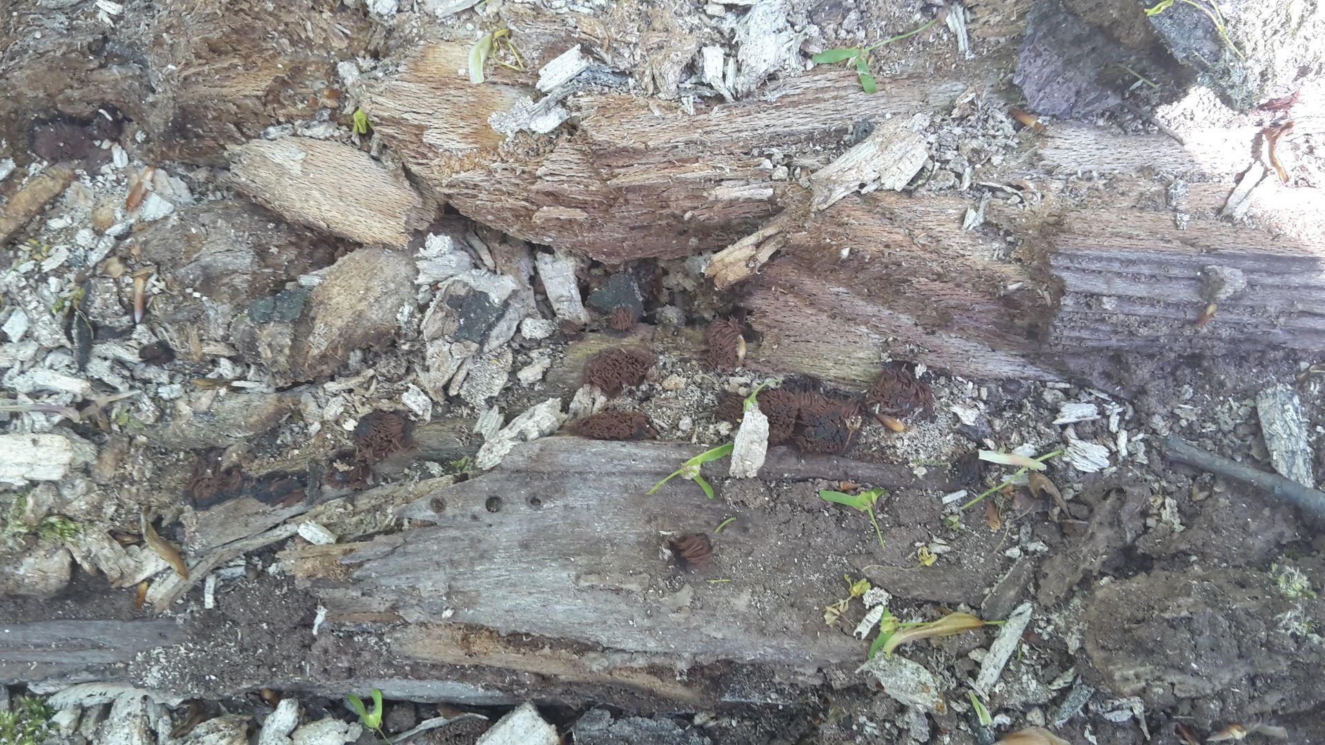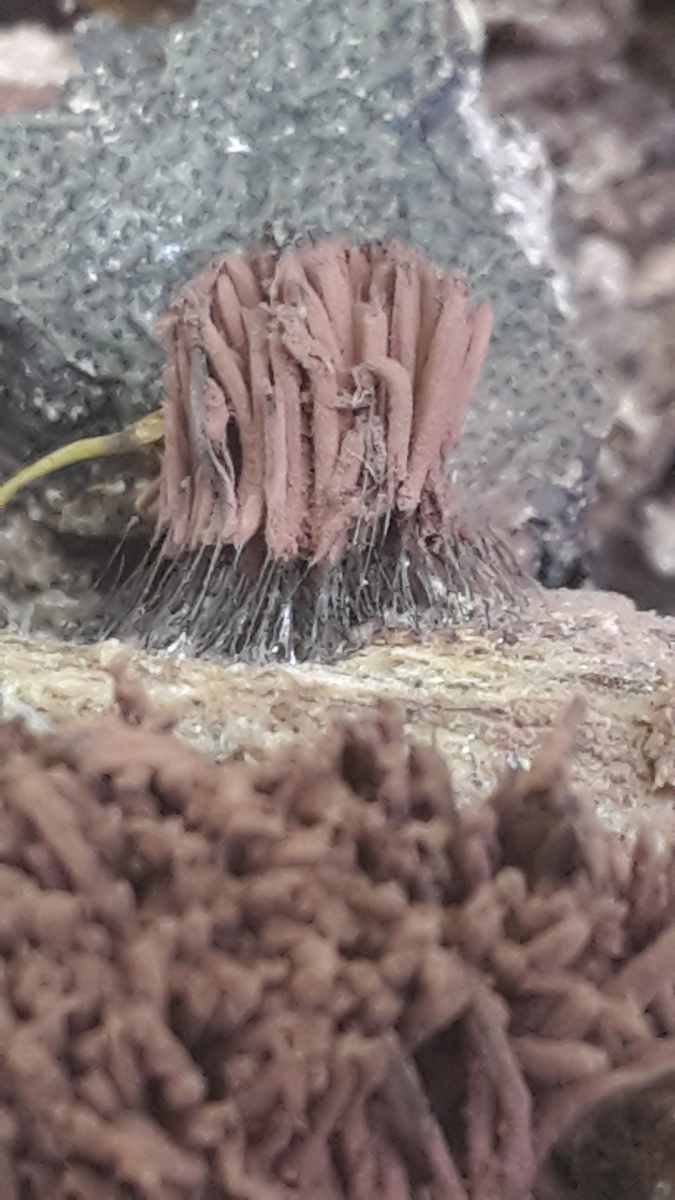 ... diese Myxomyceten gefunden (von Ferne dachte ich erst, das wären Stücke von Porlingen mit langen braunen Röhren, um so mehr hab ich mich dann beim näheren Hinsehen gefreut