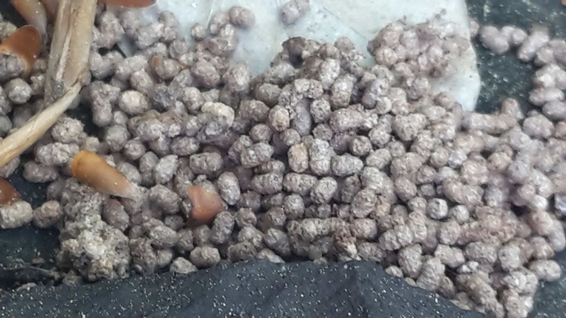 In der Nähe von Myxomyceten sehe ich oft größere Mengen solcher kleiner Köttelchen: