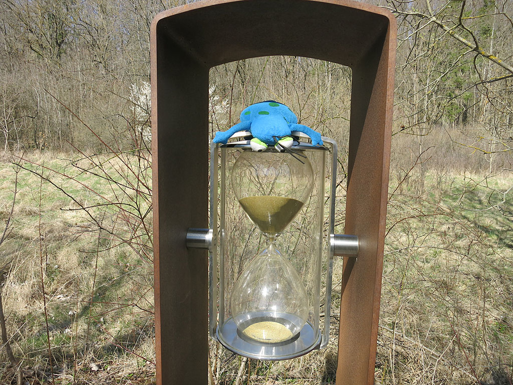 Der Hainich ist sicher bekannt und viele Ausflüge wert. Ich bin einen Rundwanderweg gegangen:“Der Pfad der Begegnung“… Okay, für Leute, die sich gerne mit Kunst und Dichtung beschäftigen – bestimmt interessant. Ich bin da eher einfach gestrickt. :grotwerd: Diese Sanduhr hat es mir aber angetan – es glitzert so schön...