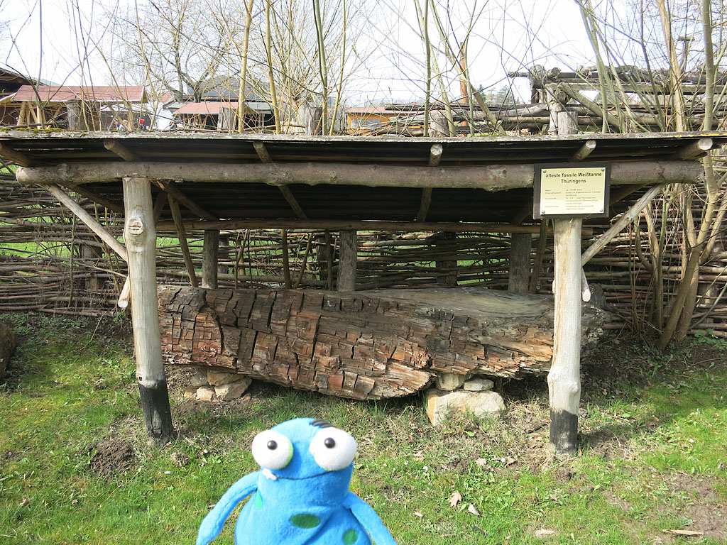 Ich habe mal gegoogelt: In der Thüringer Allgemeinen steht, dass der Baum ca. 120.000 Jahre alt sein soll. Auf der Tafel fehlt dann also eine Null.