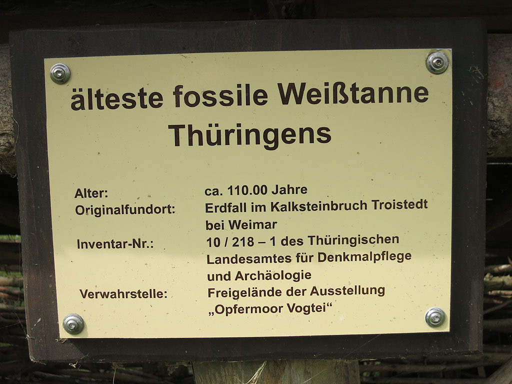 • Ich habe mal gegoogelt: In der Thüringer Allgemeinen steht, dass der Baum 120.000 Jahre alt sein soll. Auf der Tafel fehlt dann also eine Null.