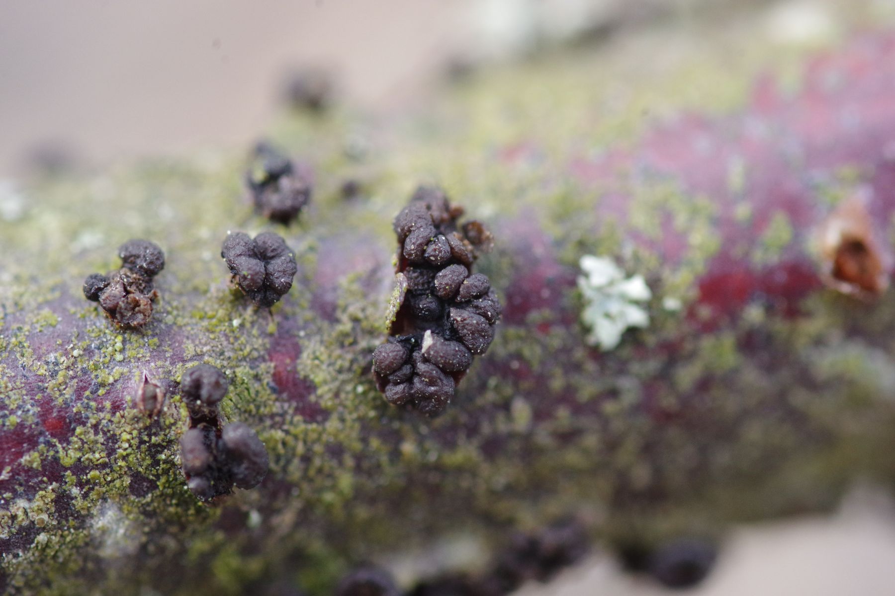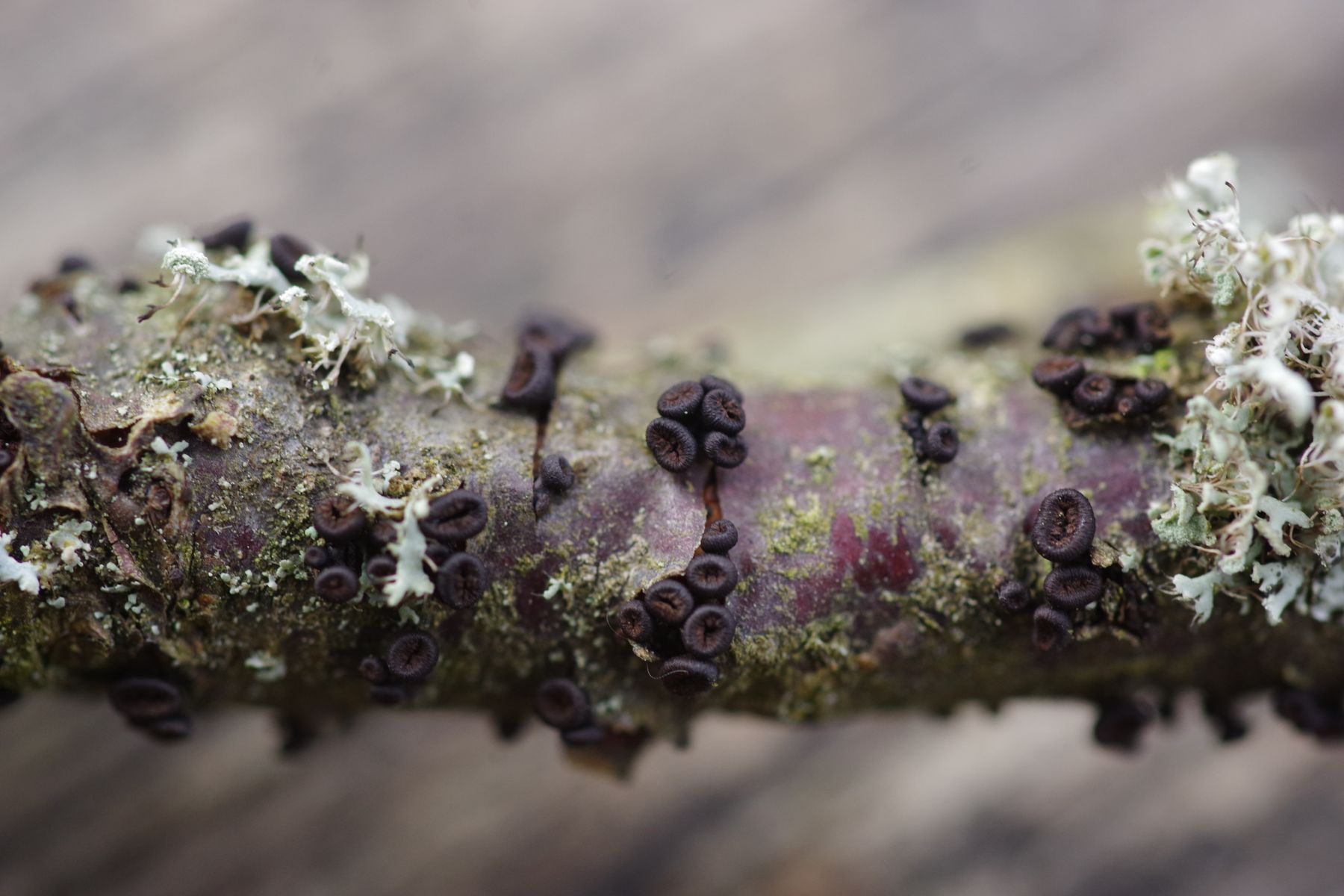 Tympanis conspersa agg., den ich vor einiger Zeit hier (RE: An Apfel) angefragt hatte, habe ich mittlerweile an zwei weiteren toten (die Schafe warns) Äpfeln gefunden. Und heute dann auch noch an Johannisbeere, das könnte eine andere Art sein, mit dem agg. dürfte das aber schon passen.