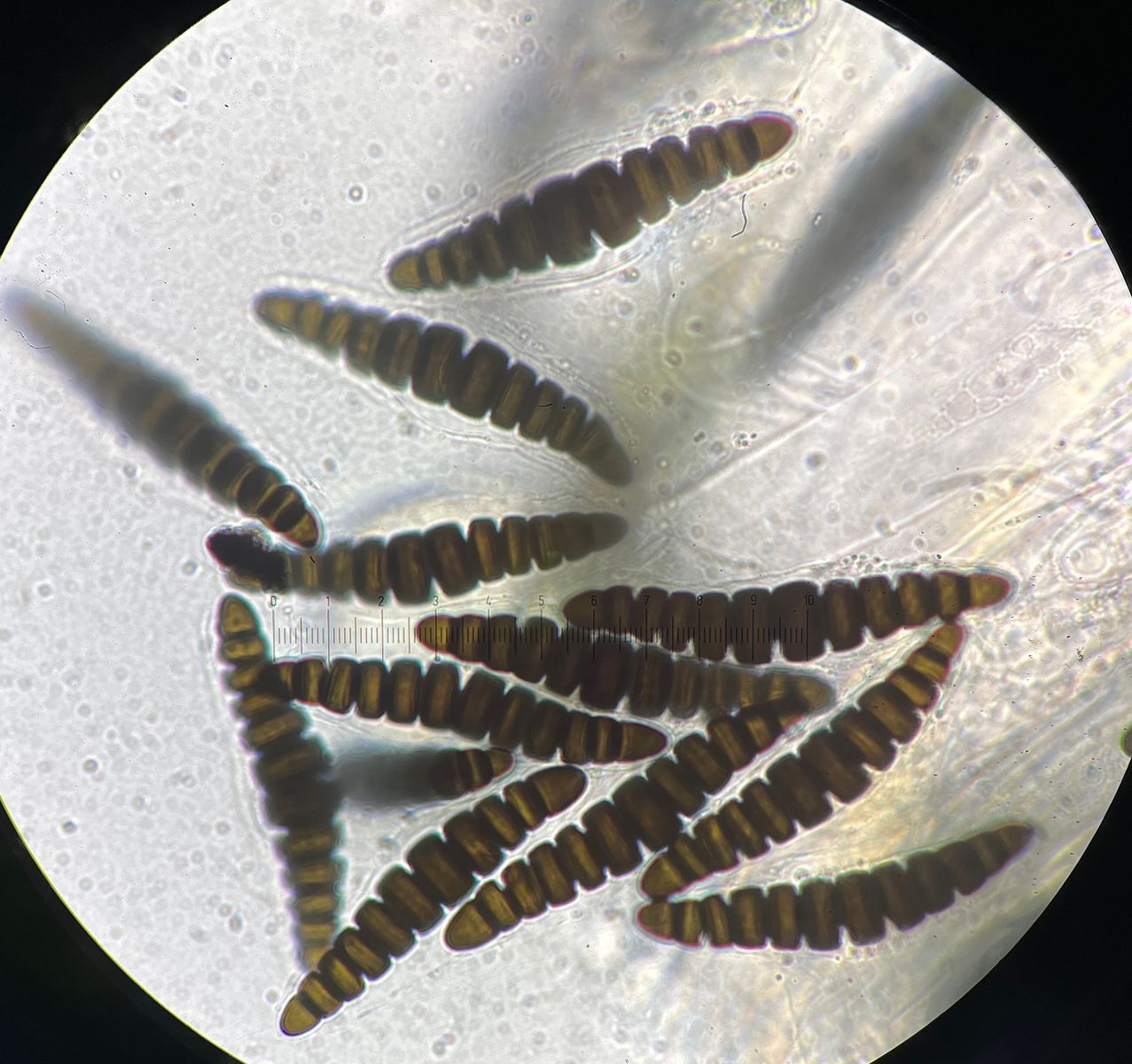 Die von Dir hier vorgestellte Species hat i.d.R. 10-zellige Sporen! Auffällig sind die 2 bis 3 vergrößerten Mittelzellen.
