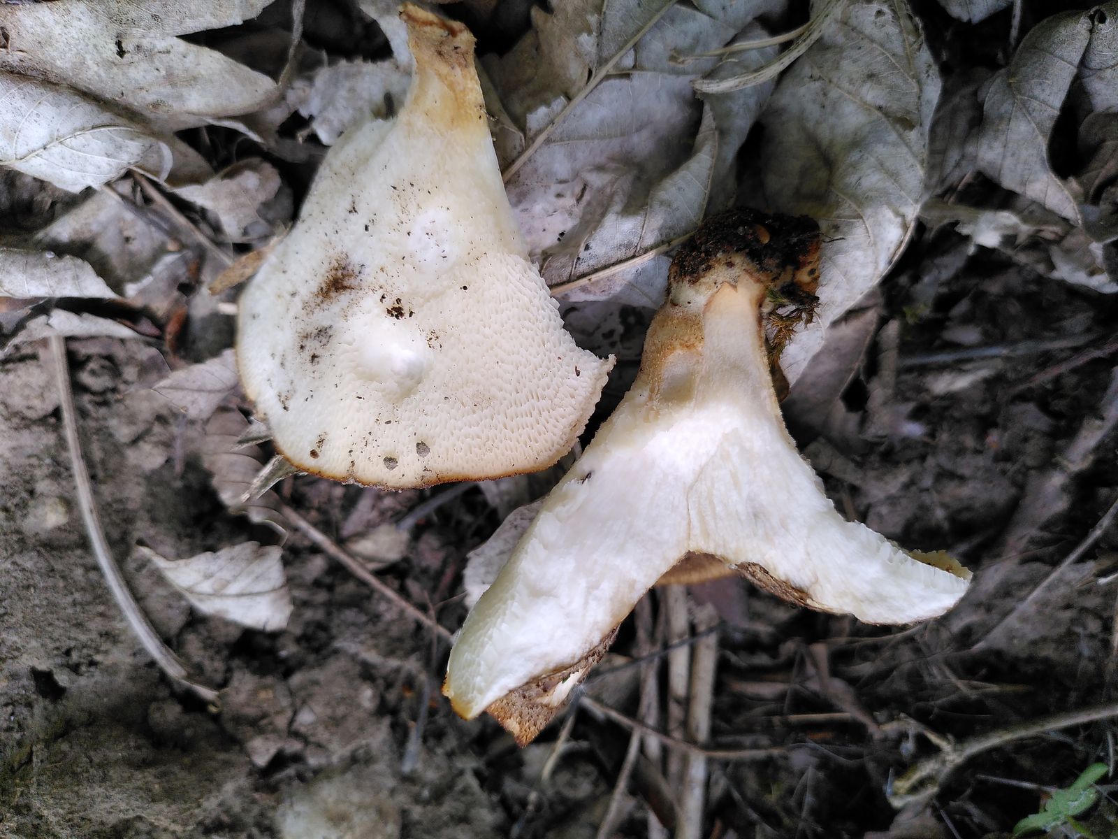 auch meine vermutlich letzte Morcheltour diesen Frühling war leider erfolglos, dafür hab ich im Eschen-Laubwald an einem kleinen Bachlauf diesen in der Streuschicht wachsenden Porling entdeckt. Der Geruch war angenehm pilzig, aber nicht mehlig-gurkenartig, sodass ich eher zum Sklerotienporling tendieren würde, der aber selten sein soll...