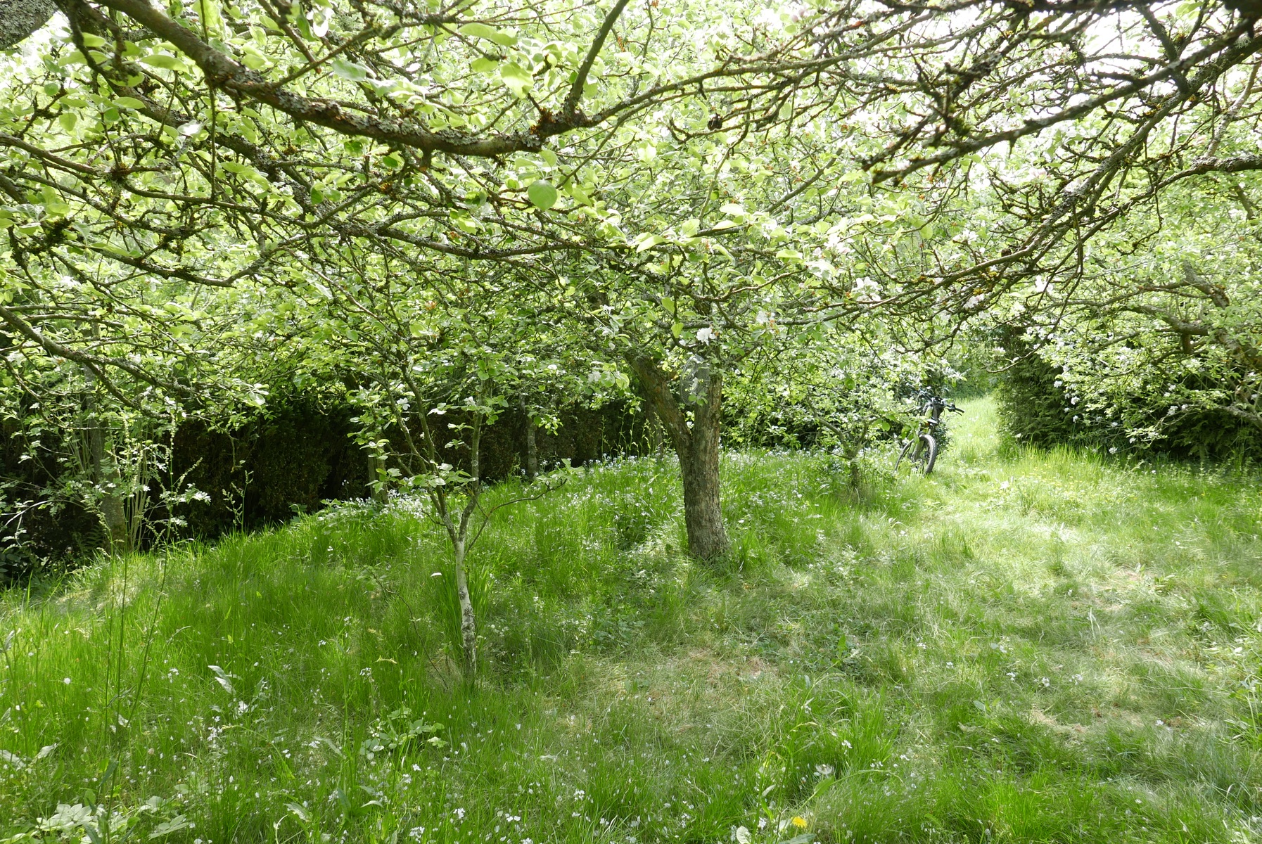 Aber egal, es ist ein wundervolles Fleckchen Erde, wo man zwar viel arbeiten muss, aber auch wunderbar zur Ruhe kommen kann: 300 qm, 26 Apfelbäume, fast rundherum Hecke.