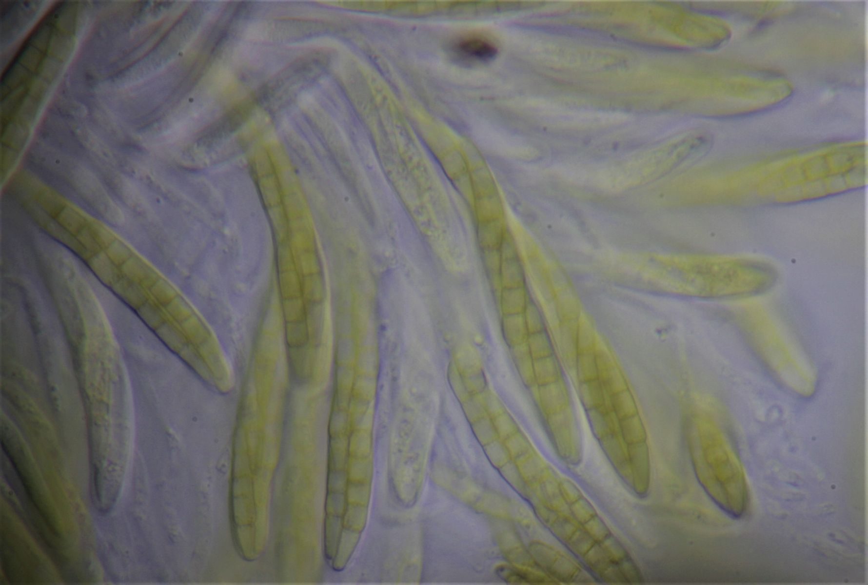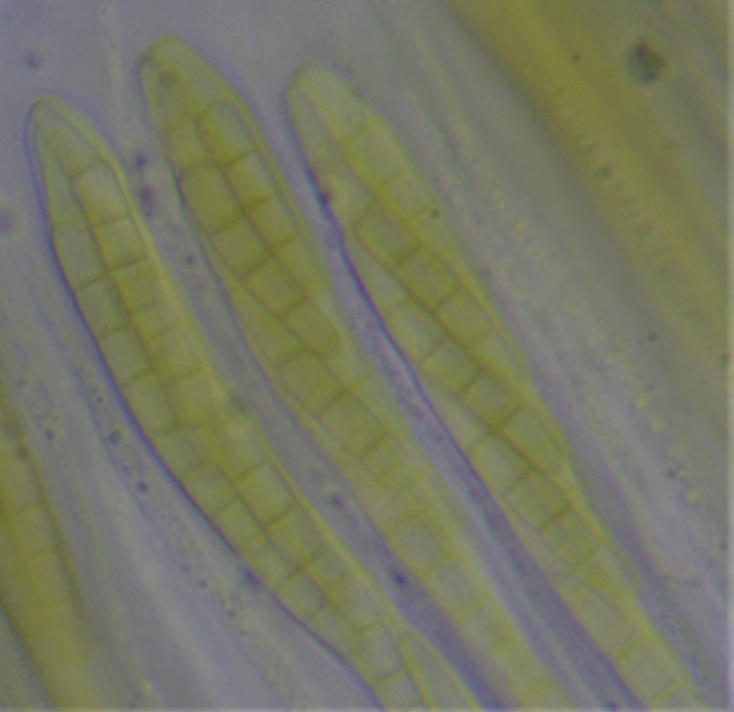 Pseudothezien im Substrat eingesenkt, Sporen mit 4-s,gelbgrünlich, obere Zelle der Spore abgerundet zugespitz, 2.Zelle leicht verdickt,22-23 x 4-4,8µ , Asci 8-Sporig: 87 x 8,8 µ