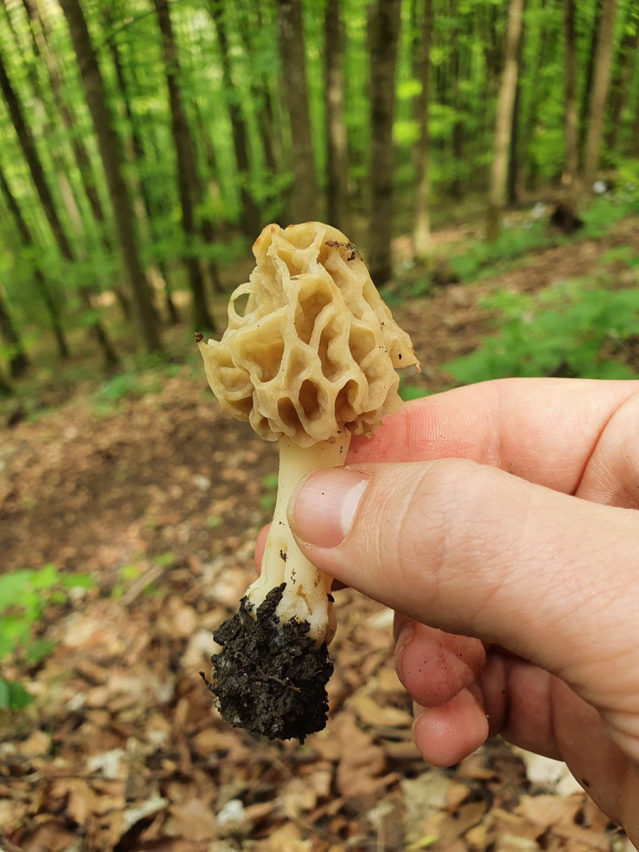 Ganz besonders gefreut habe ich mich über diesen persönlichen Erstfund: Meine allererste Speisemorchel (Morchella esculenta)! Ich konnte dann auch nicht widerstehen, dieses Exemplar mizunehmen und zu probieren. Der nussige Geschmack ist wirklich charakteristisch, und ich hoffe in Zukunft mehr als dieses kleine Pilzchen finden zu können ![]()