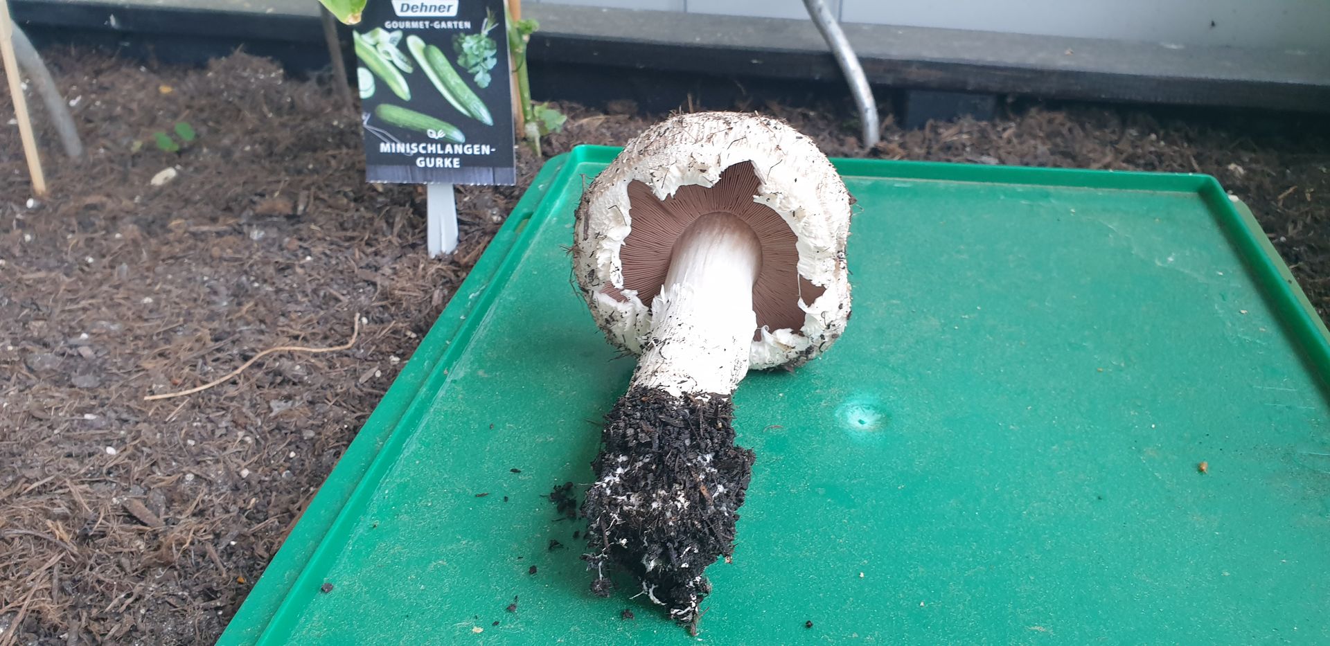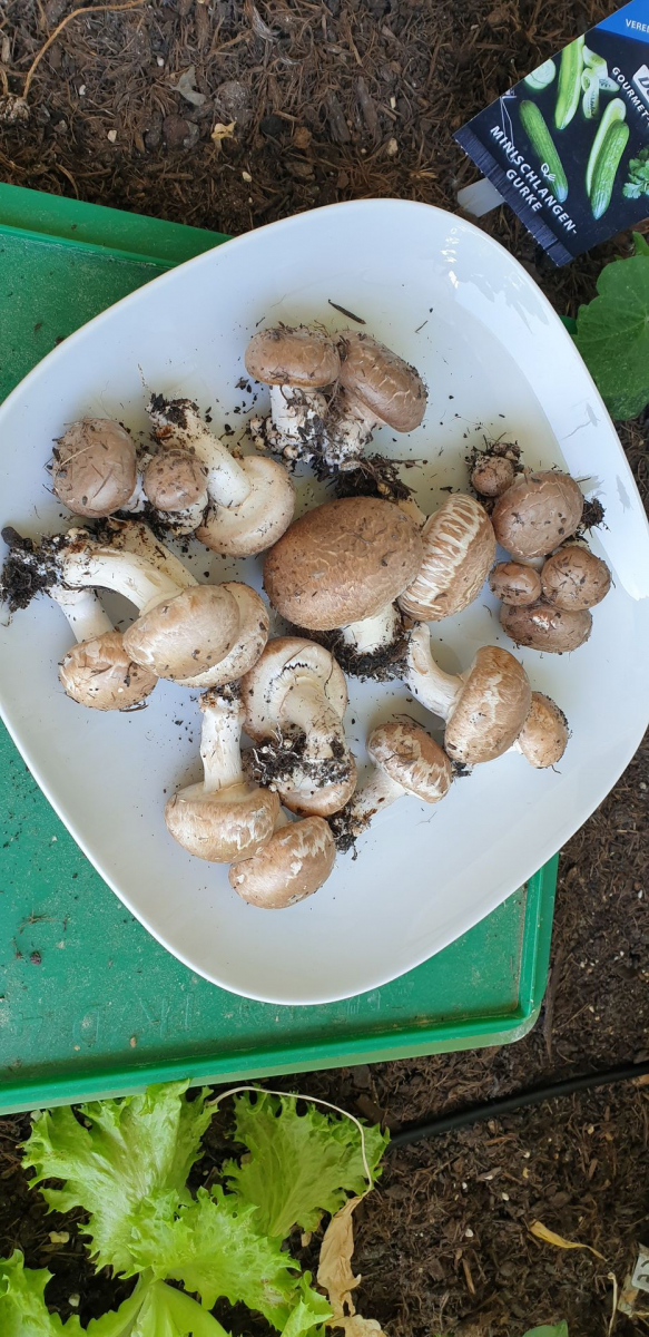 Könnt ihr mir sagen, ob ich hier tatsĂ€chlich einen Zuchtchampignon in meinem Hochbeet gezpchtet habe? đ