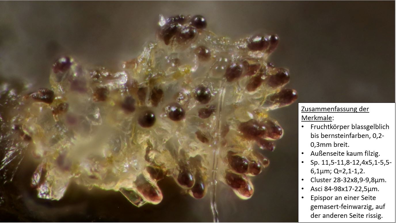 Also Sporen feinwarzig und z.T. rissig. Maße 11-15 x 5-7 µm.