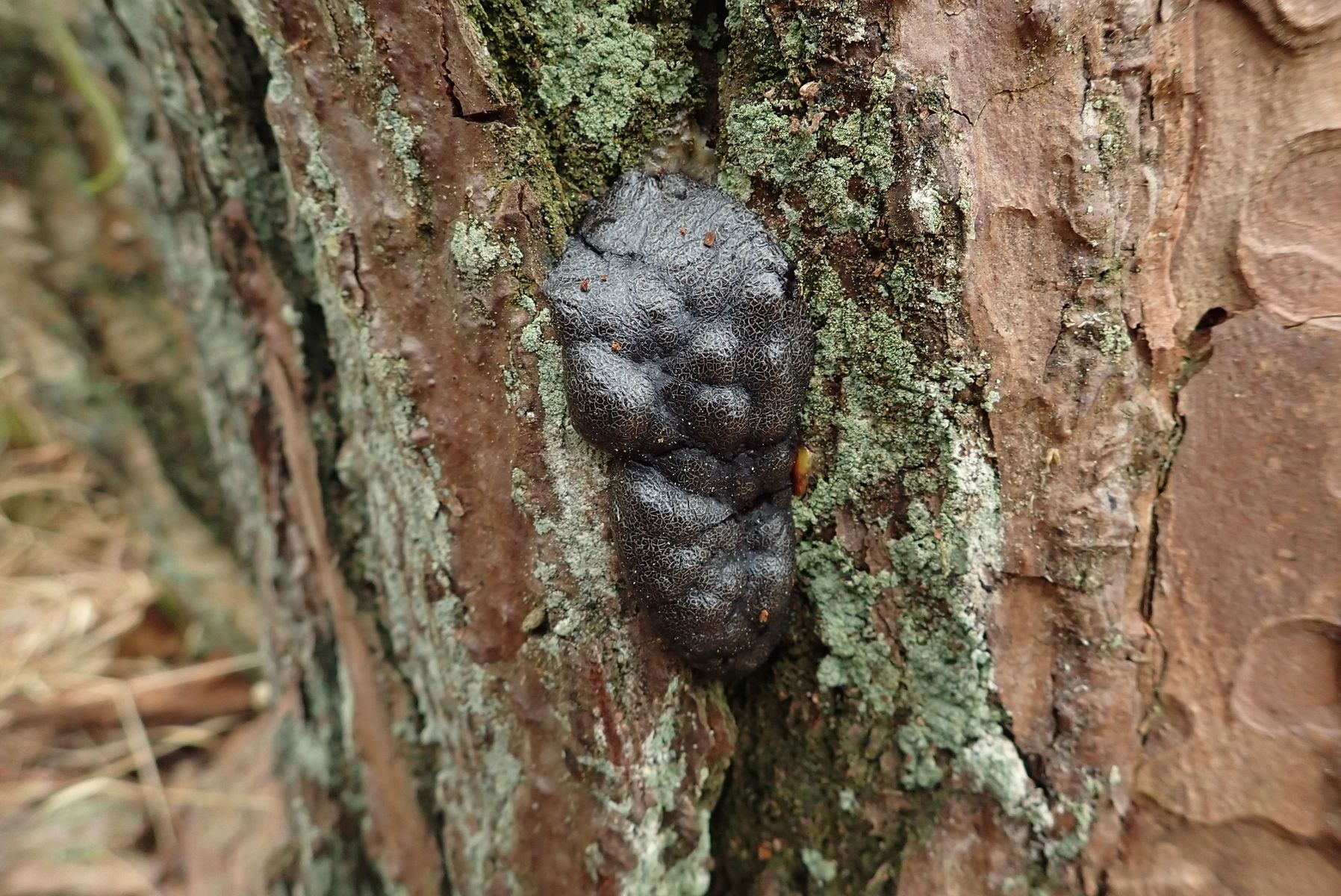 heute fand ich im "NSG Ribnitzer Großes Moor" in Mecklenburg einen dunkelbraunen Myxomyceten an Kiefer.