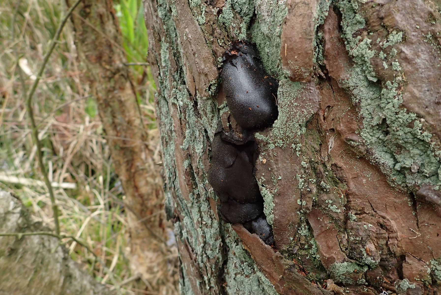 heute fand ich im "NSG Ribnitzer Großes Moor" in Mecklenburg einen dunkelbraunen Myxomyceten an Kiefer.