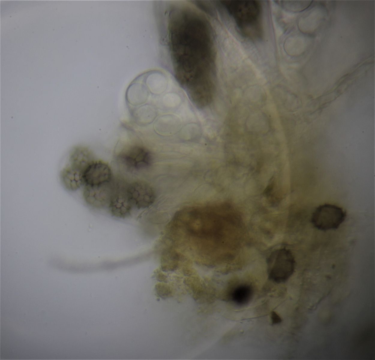 Am 24.04 war ich mit Florian unterwegs im FFH-Gebiet Böhme, an einem Teich dort sammelten wir beide etwas Dung von Branta canadensis ein. Heute konnte ich auf diesem Ascodesmis sphaerospora finden.