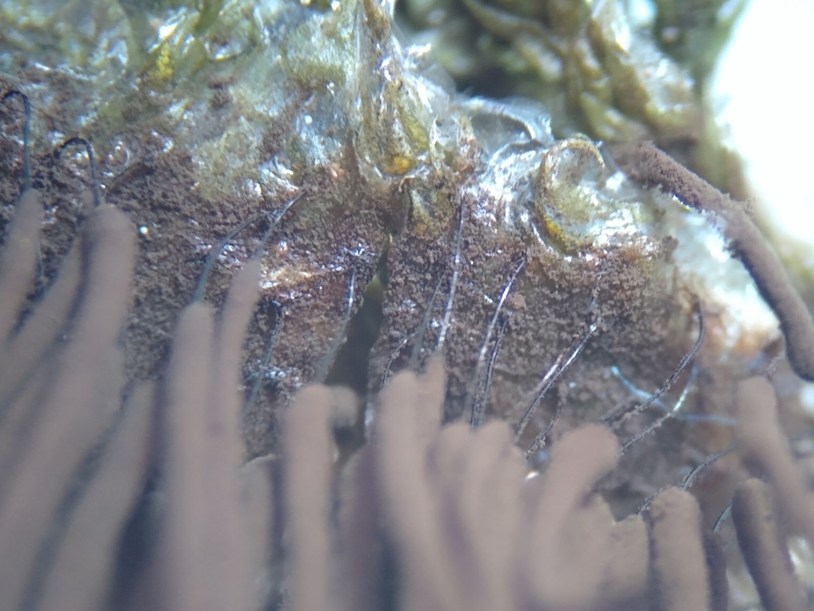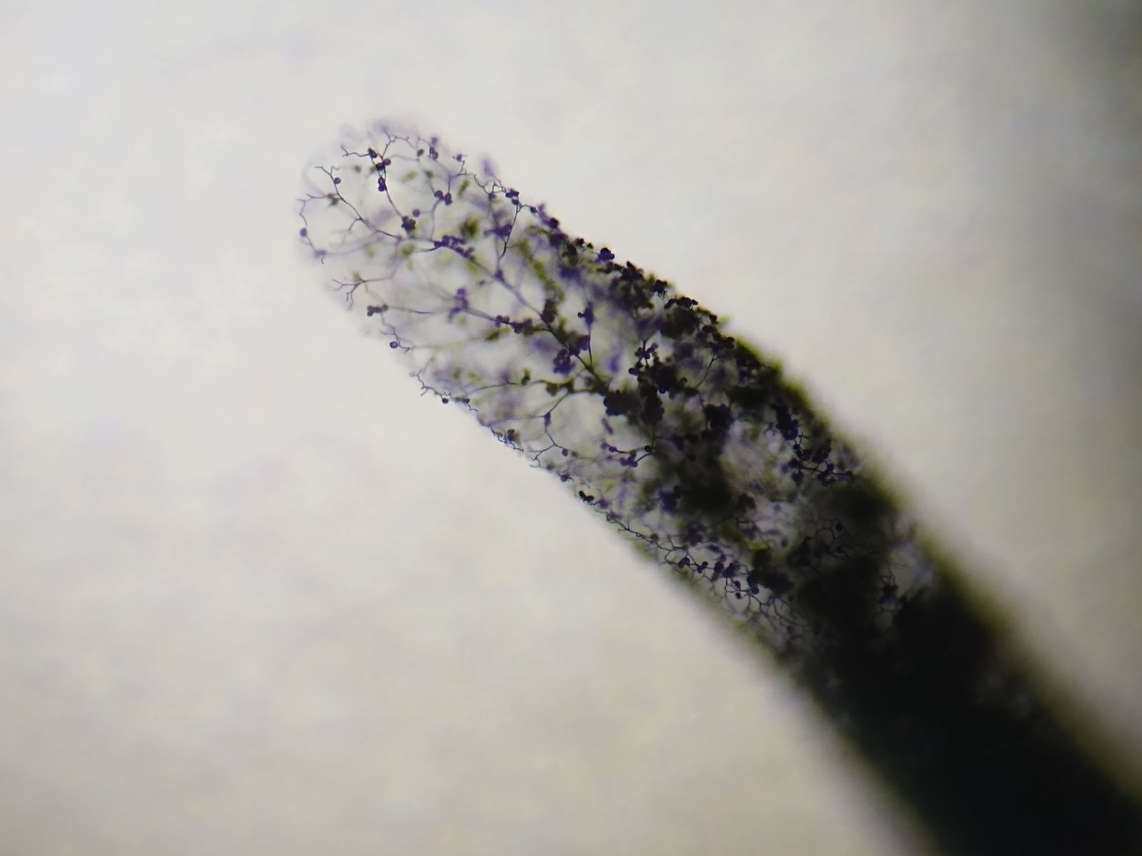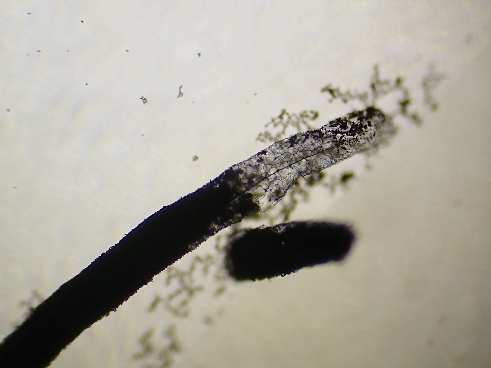 Gerne würde ich das Capillitium über die gesamte Sporocarplänge begutachten, aber es sitzt noch voller Sporen.