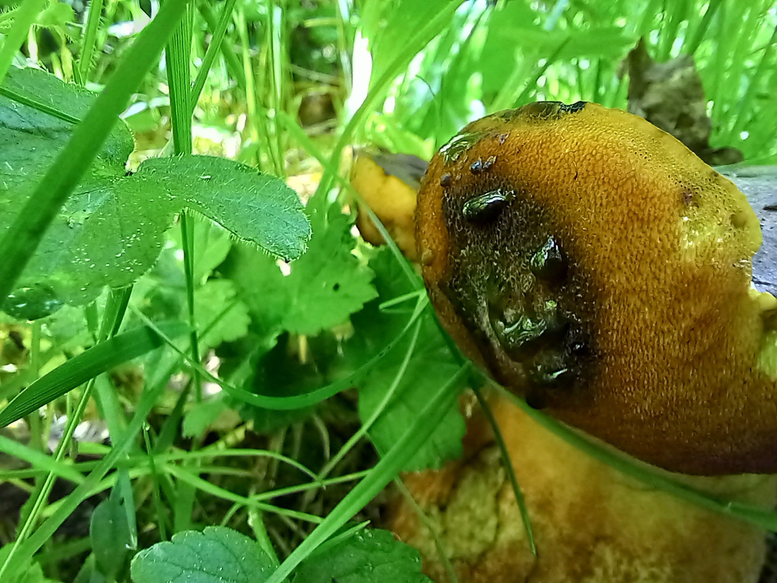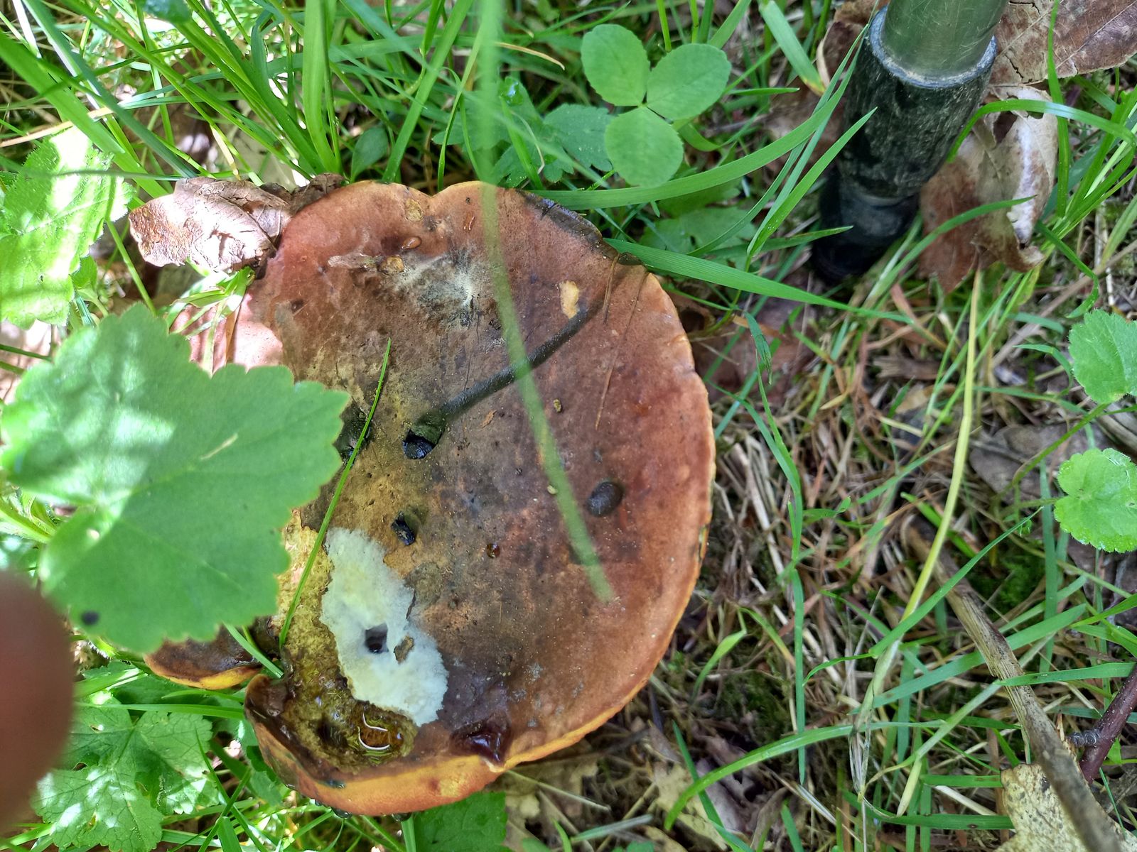 Nachdem ich noch einen uralten Stielporling begutachtete der sich praktisch auch schon in Auflösung befand und eines Fotos nicht mehr würdig war, machte ich mich wieder auf den Weg - und was sah ich? Noch so einen Urururalten Flocki. Dieser war gerade dabei, sein unteres nach ober zu krempeln