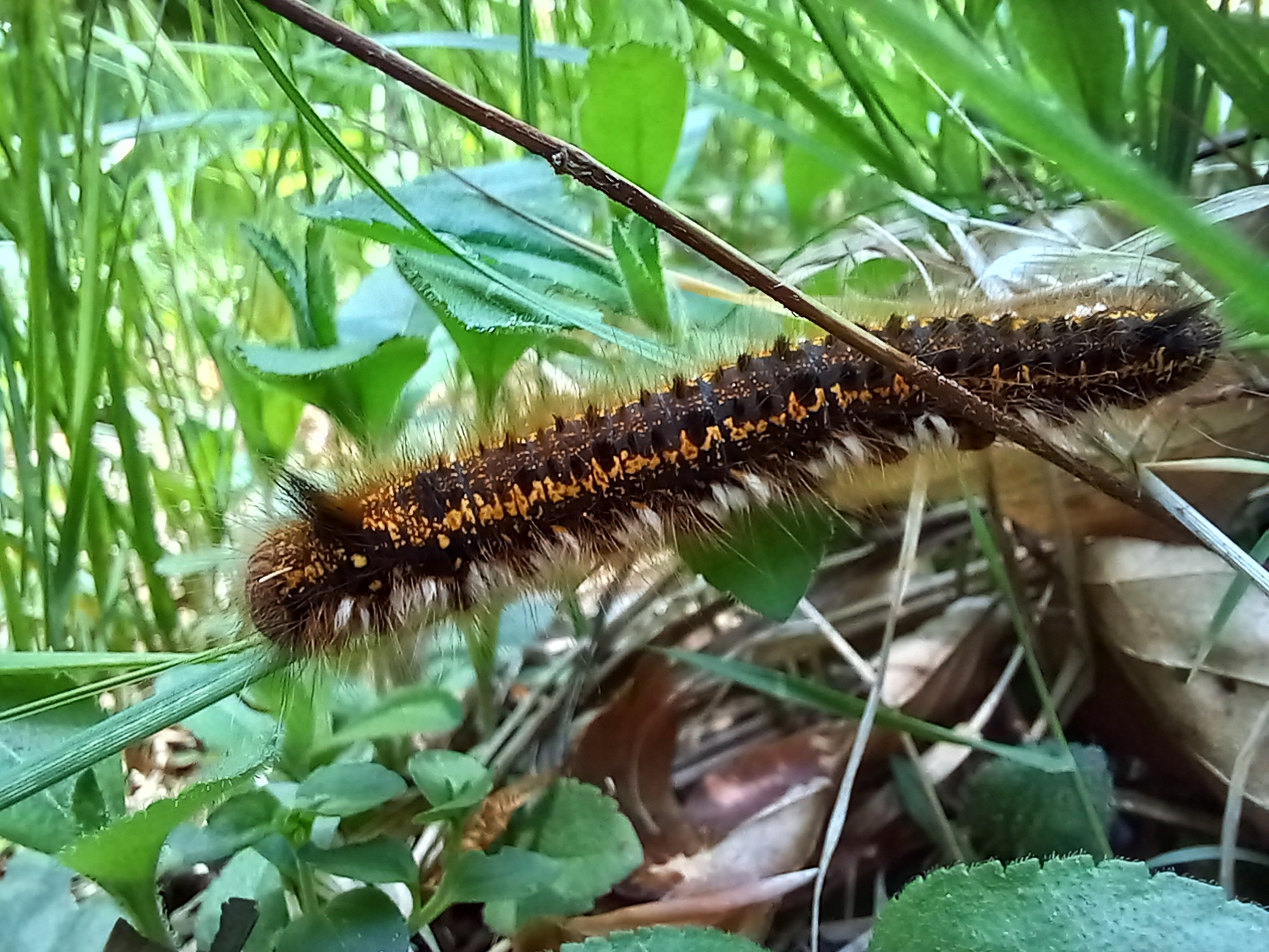 So manche Verrenkung hat manchmal auch etwas Gutes. Im Gras zu meinen Füßen erspähe ich ein sehr haariges mir unbekanntes Tierchen.