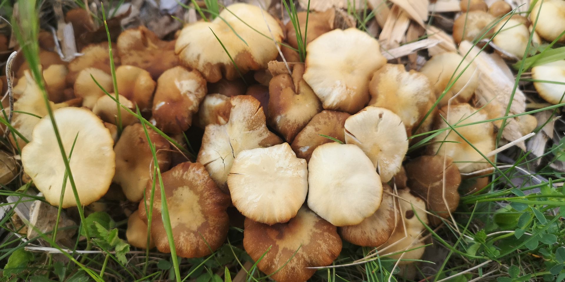 . Büschelig an Hackschnitzeln wachsend, Vermutung Nadelholz