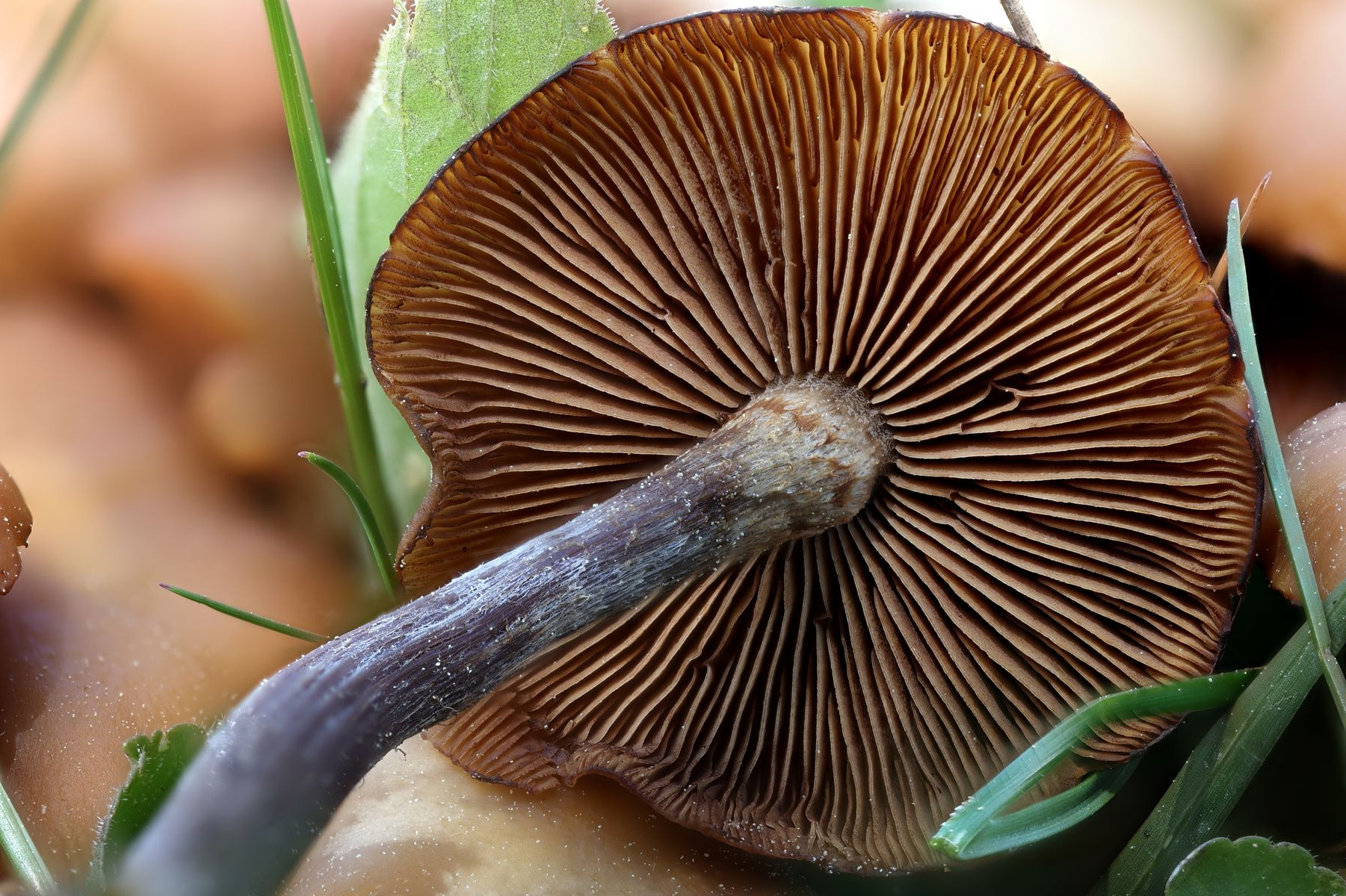 . Lamellen braun, mit Zahn herablaufend, mit Zwischenlamellen