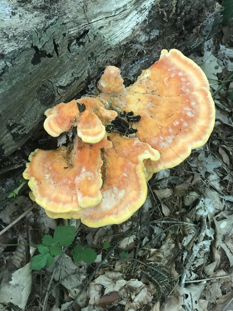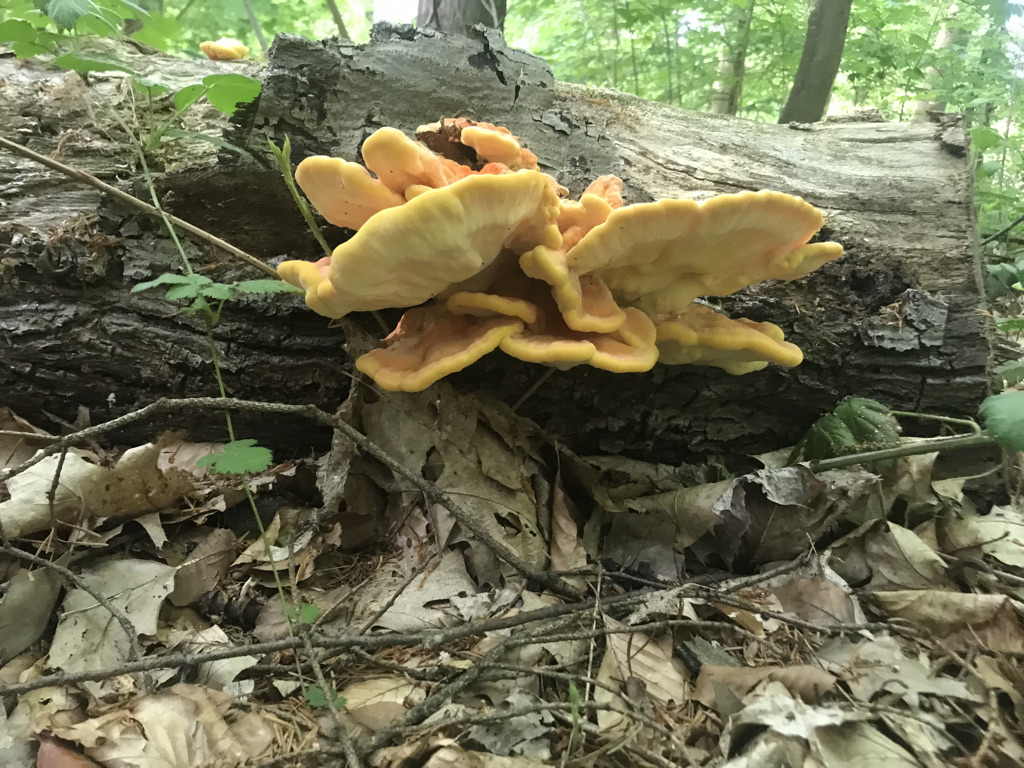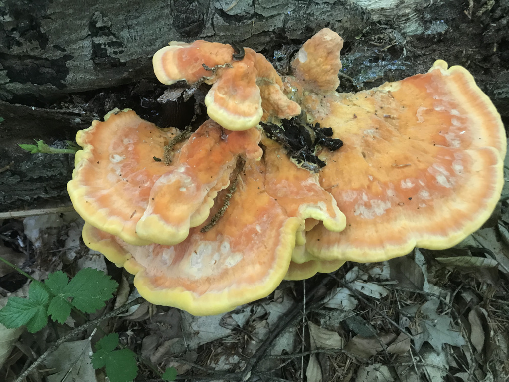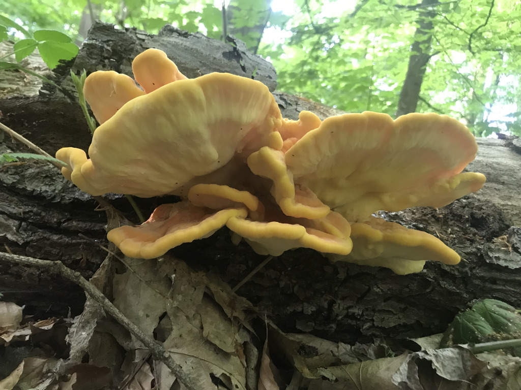 den folgenden Pilz habe ich als Gemeinen Schwefelporling identifiziert. Er wuchs an einem Stück Totholz, war sehr weich und beim Anfassen "saftig".