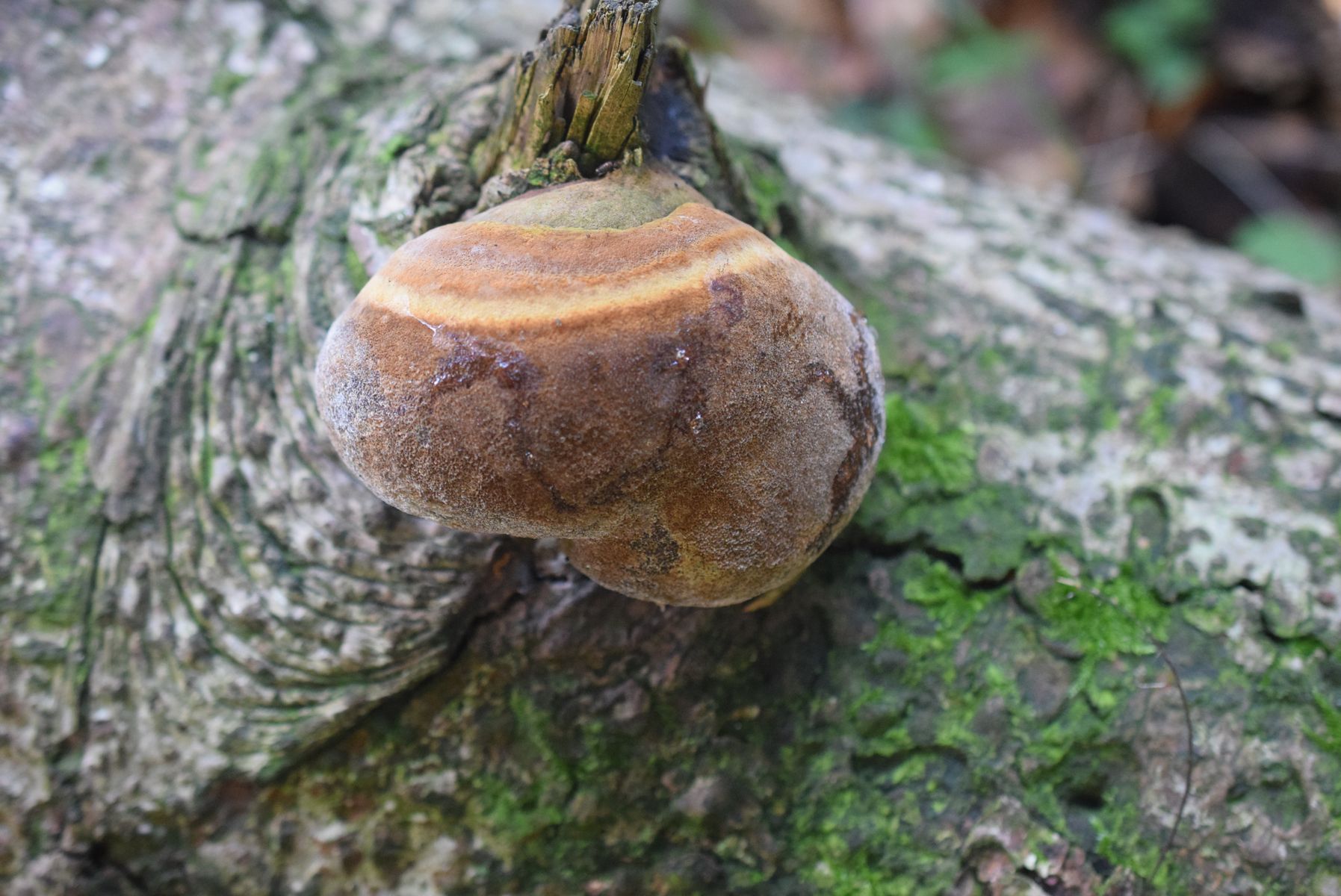 Aber beim Feuerschwamm bleibe ich und denke, dass es gut und gern der an Nadelholz wachsende Tannen-Feuerschwamm (Phellinus hartigii) sein könnte.