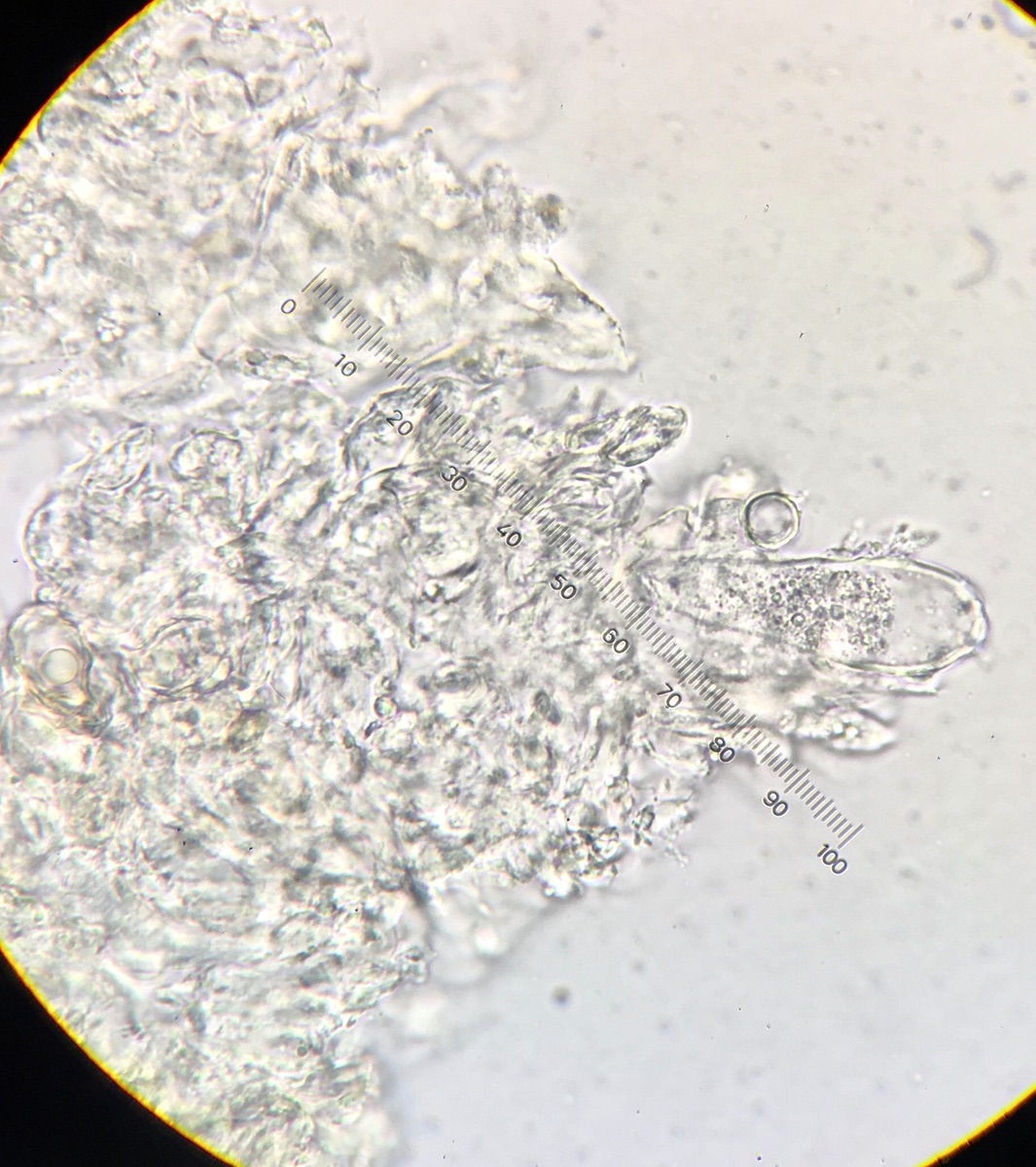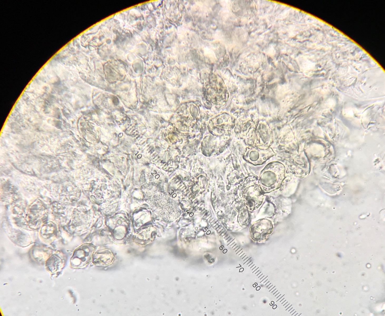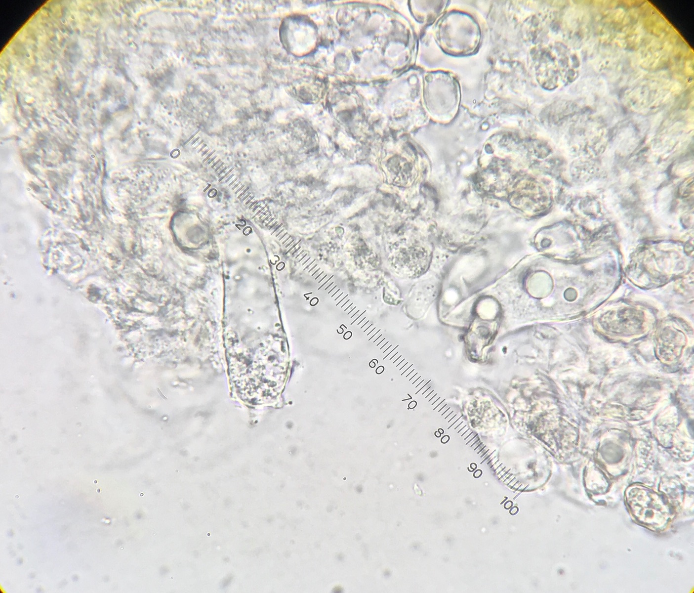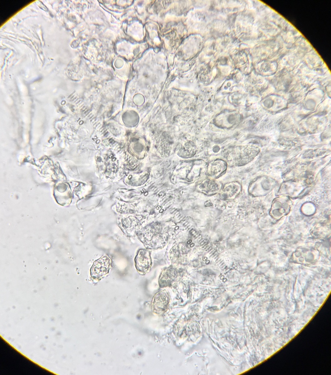 Die Sporen messen 12-15 x 8-9 und sind ausgeprägt mehreckig, das würde ja schon zu Entoloma plebejum passen. Da ich aber mit Rötlingen wenig Erfahrung habe, bitte ich euch um eure Meinung.