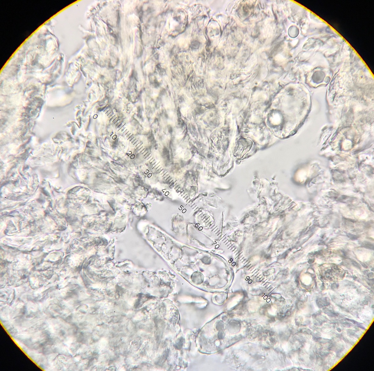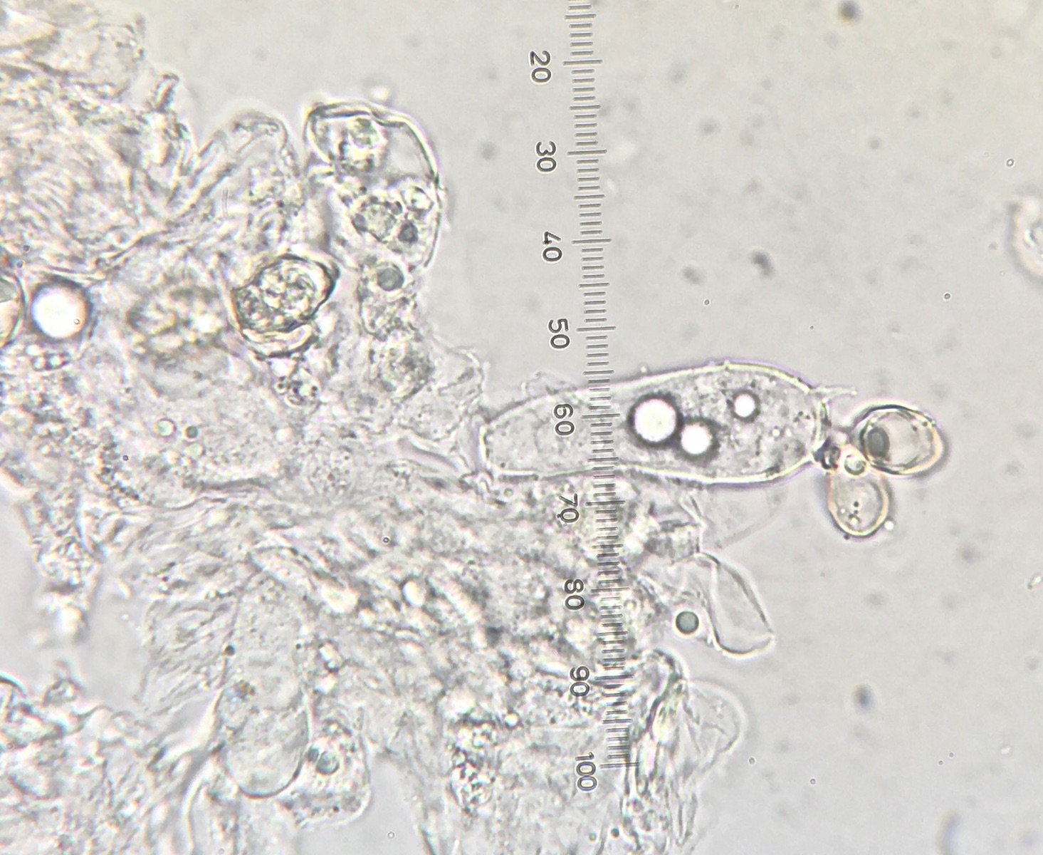 Die Sporen messen 12-15 x 8-9 und sind ausgeprägt mehreckig, das würde ja schon zu Entoloma plebejum passen. Da ich aber mit Rötlingen wenig Erfahrung habe, bitte ich euch um eure Meinung.