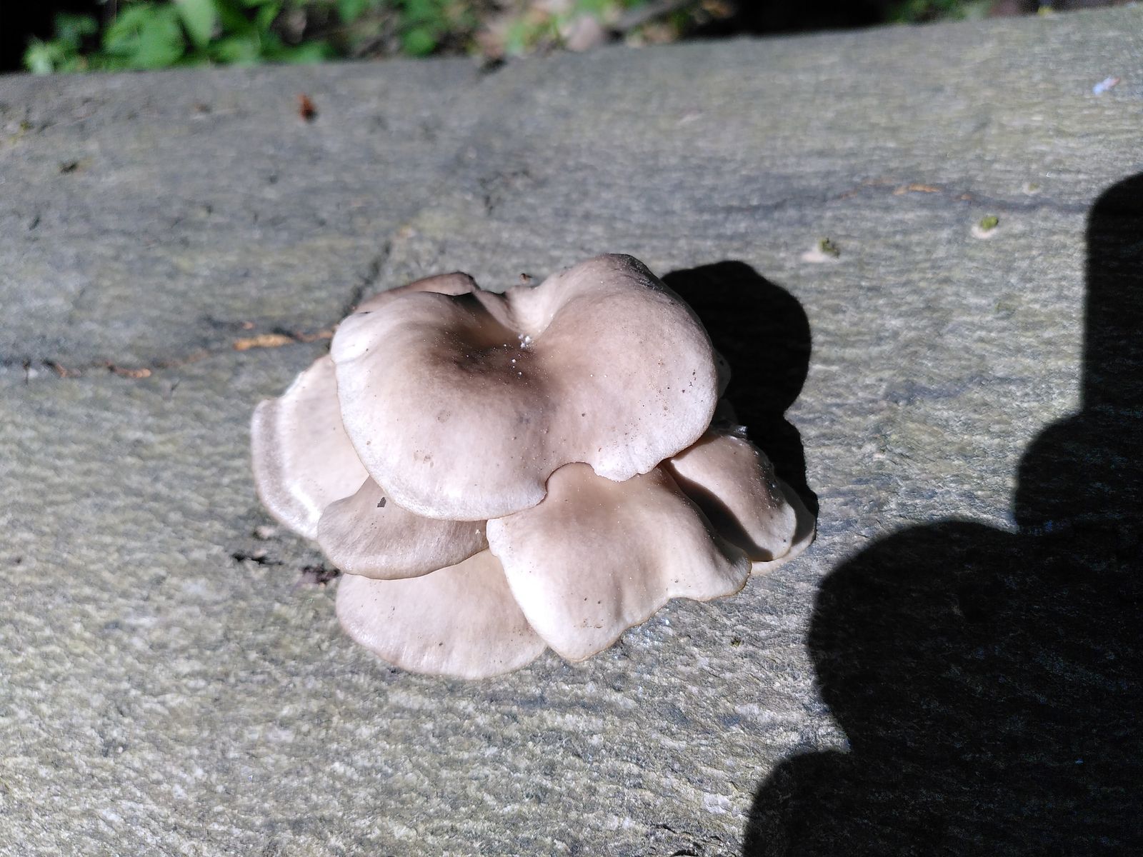 mal abgesehen davon, dass ich bei den gezeigten Exemplaren auch eher zu P. pulmonarius tendieren würde, hatte ich am Wochenende auch eine überraschende Begegnung mit P. ostreatus, die ich um die Zeit nicht erwartet hätte.