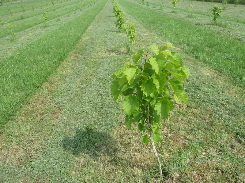 Um die Freizeit sinnvoll zu nutzen, habe ich mich meinen seit Jahren brach liegenden landwirtschaftlichen Flächen zugewendet. Eine Obst- und Nussplantage anlegen wäre doch eine feine Sache, Selbstversorgung wird ja in letzter Zeit groß geschrieben. Das lässt sich doch kombinieren? Also wird die Baum-Hasel Corylus colurna beschafft, und zwar Setzlinge aus Frankreich.