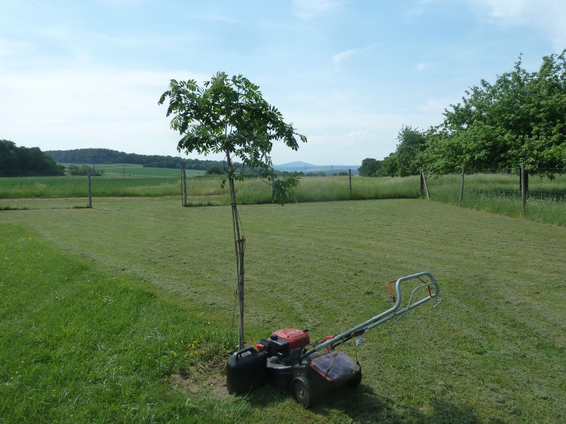 An sowas wie Vermarktung denke ich nicht, es ist eher ein experimentelles Feld. Auf drei anderen Ackerflächen experimentiere ich mit Paulownia tomentosa und P. elongata (Blauglockenbaum) für die Energieholzgewinnung/Kurzumtrieb sowie einer ganzen Palette von Juglandaceae für die Nussproduktion (Carya laciniosa, C. ovata, C. illinoiensis, Juglans nigra, J. microcarpa, J.major, J. ailantifolia sowie diverse Hybride).