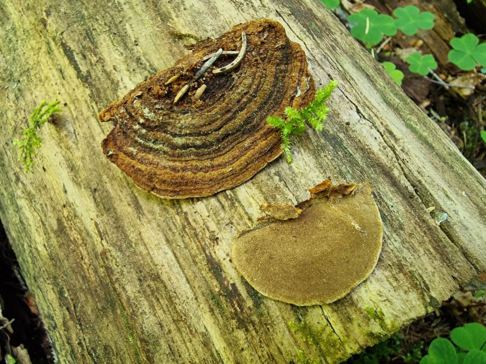 Wegen dem Phellinus... links daneben ziemlich im Schatten sind typisch effusreflex wachsende Fruchtkörper zu sehen. Ich denk, dass die schon auch schöne Hüte ausbilden kann. Das sieht man ja auch bei anderen mehr effusreflex wachsenden Arten wie Ph. conchatus oder auch Antrodia serialis manchmal. Auf Fichte ist das mögliche Artenspektrum auch ziemlich begrenzt.