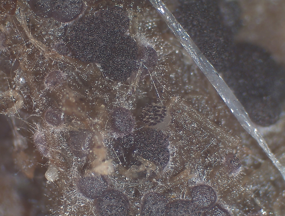 eigentlich stelle ich keine Funde ein, die klar sind, aber da war ein Saccobolus quadrisporus auf der Rinderdunglieferung von Meike und Michael von den Rieselfeldern bei Münster, die ich als Vergleich zu den Rinderdungproben aus dem Lainzer Tiergarten untersuche. Hier vielleicht interessant, daß die Sporencluster an den Polen jeweils mit einer Gelkappe versehen sind. Das wird in der Literatur nicht immer so berichtet.